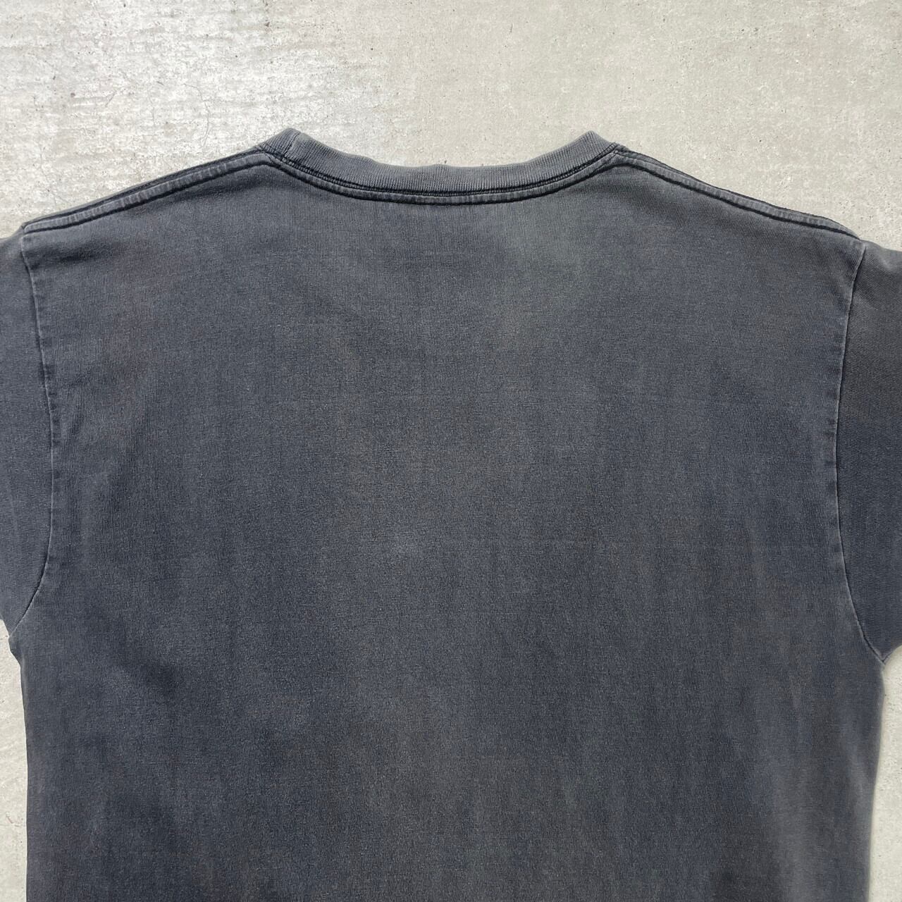 ■アニマル オオカミ プリントTシャツ メンズM~L相当 古着 アート 狼 アニマル 動物 フェードブラック 黒色【Tシャツ】/ブラック