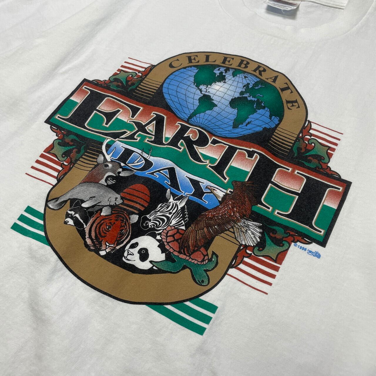 ■90年代 EARTH DAY 地球の日 プリントTシャツ メンズL古着 90s ヴィンテージ VINTAGE アニマルプリント コピーライト 1996 白【Tシャツ】/ホワイト