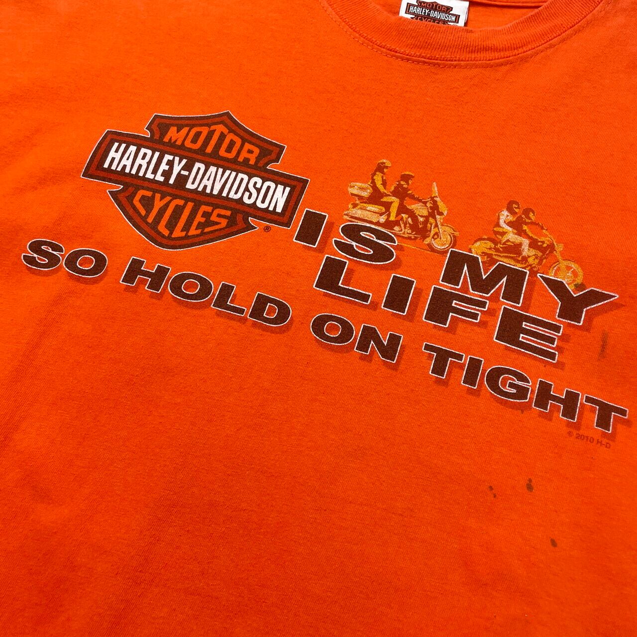 ■00年代 USA製 Harley-Davidson ハーレーダビッドソン プリントTシャツ メンズXL 古着 00s 2010 Y2K ヴィンテージ VINTAGE バイク モーターサイクル 両面プリント 【Tシャツ】/オレンジ