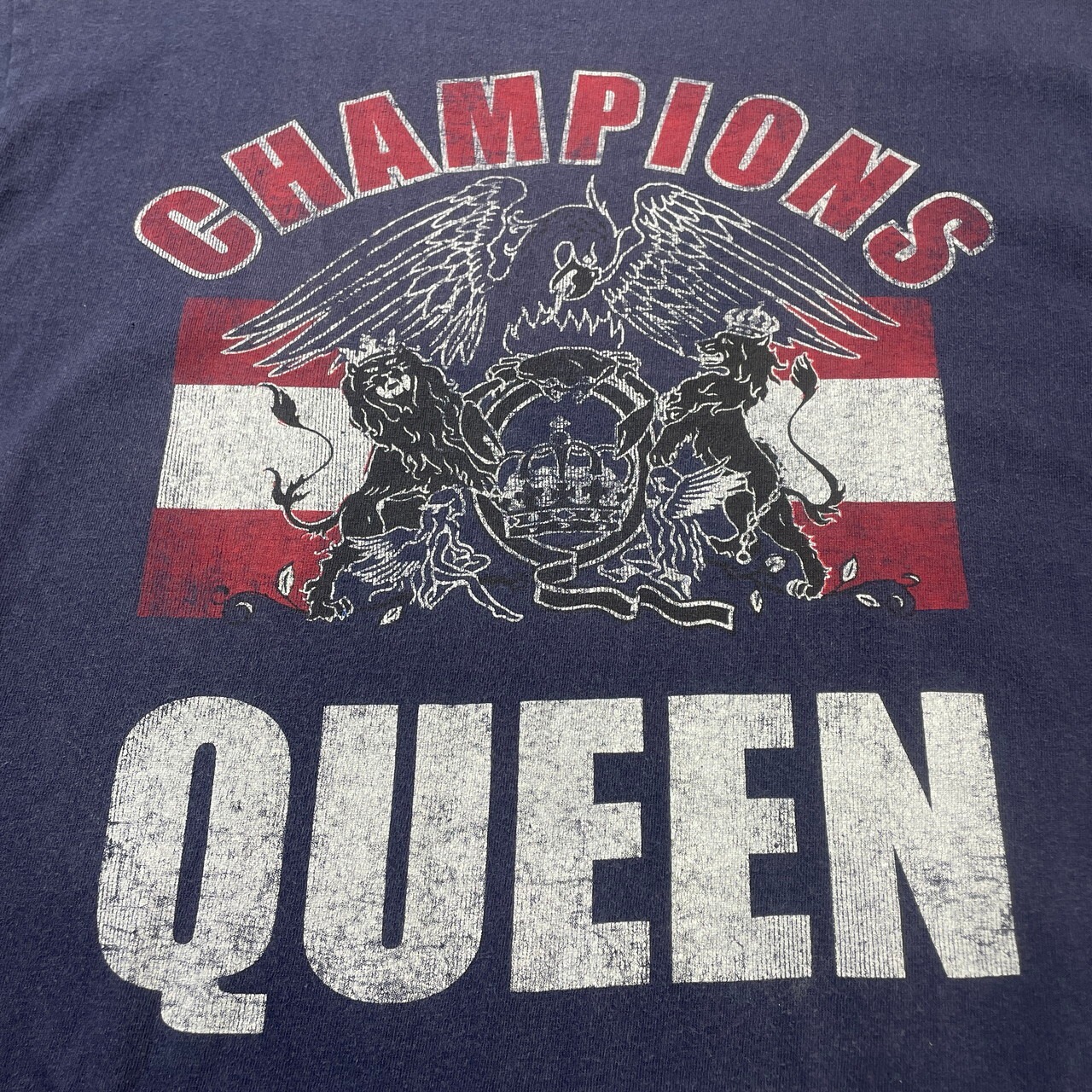 ■00年代 QUEEN クイーン バンドTシャツ バンT メンズM 古着 00s リプリント フェードネイビー 紺色【Tシャツ】/ネイビー