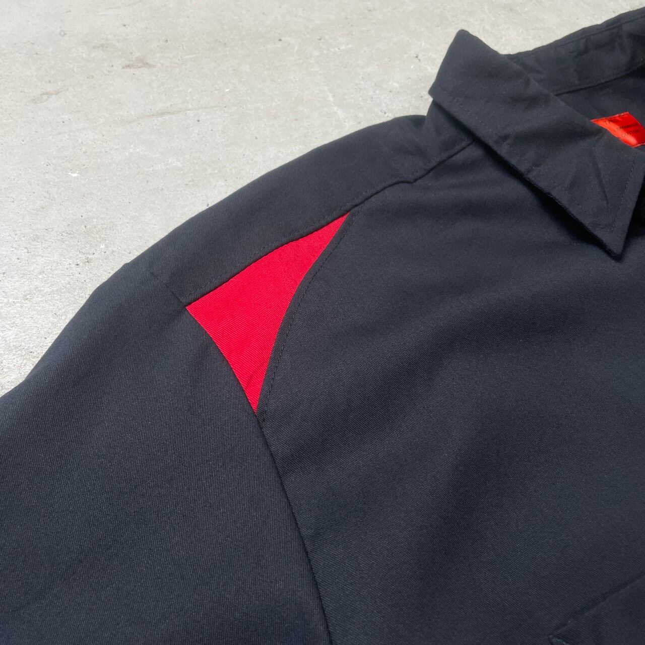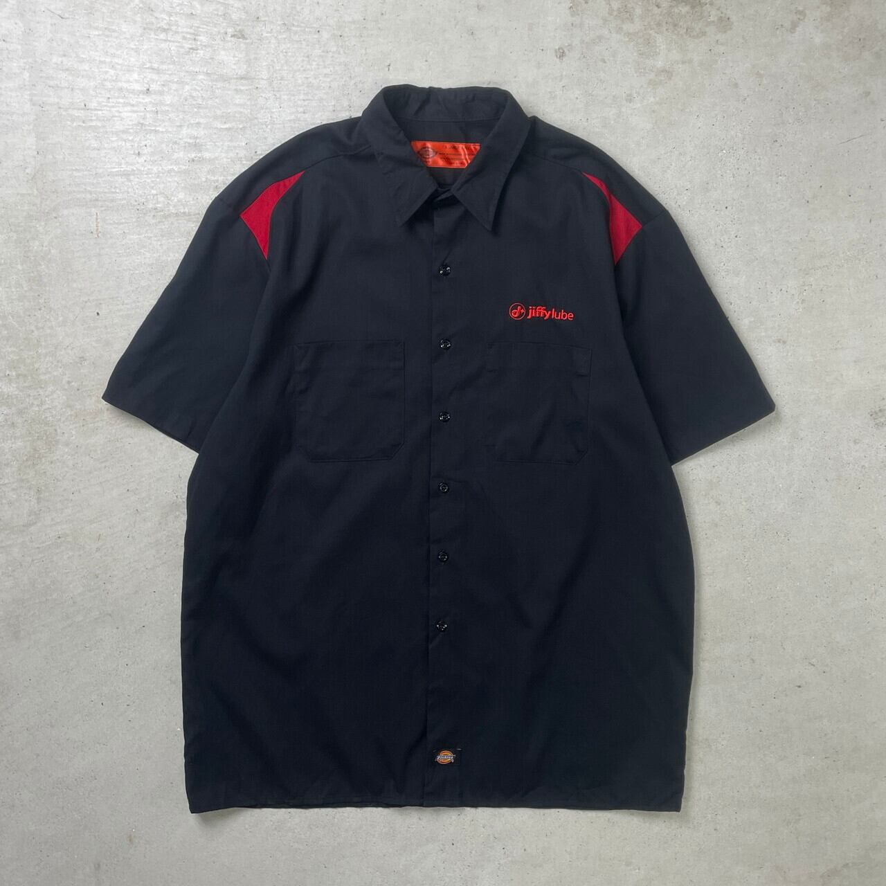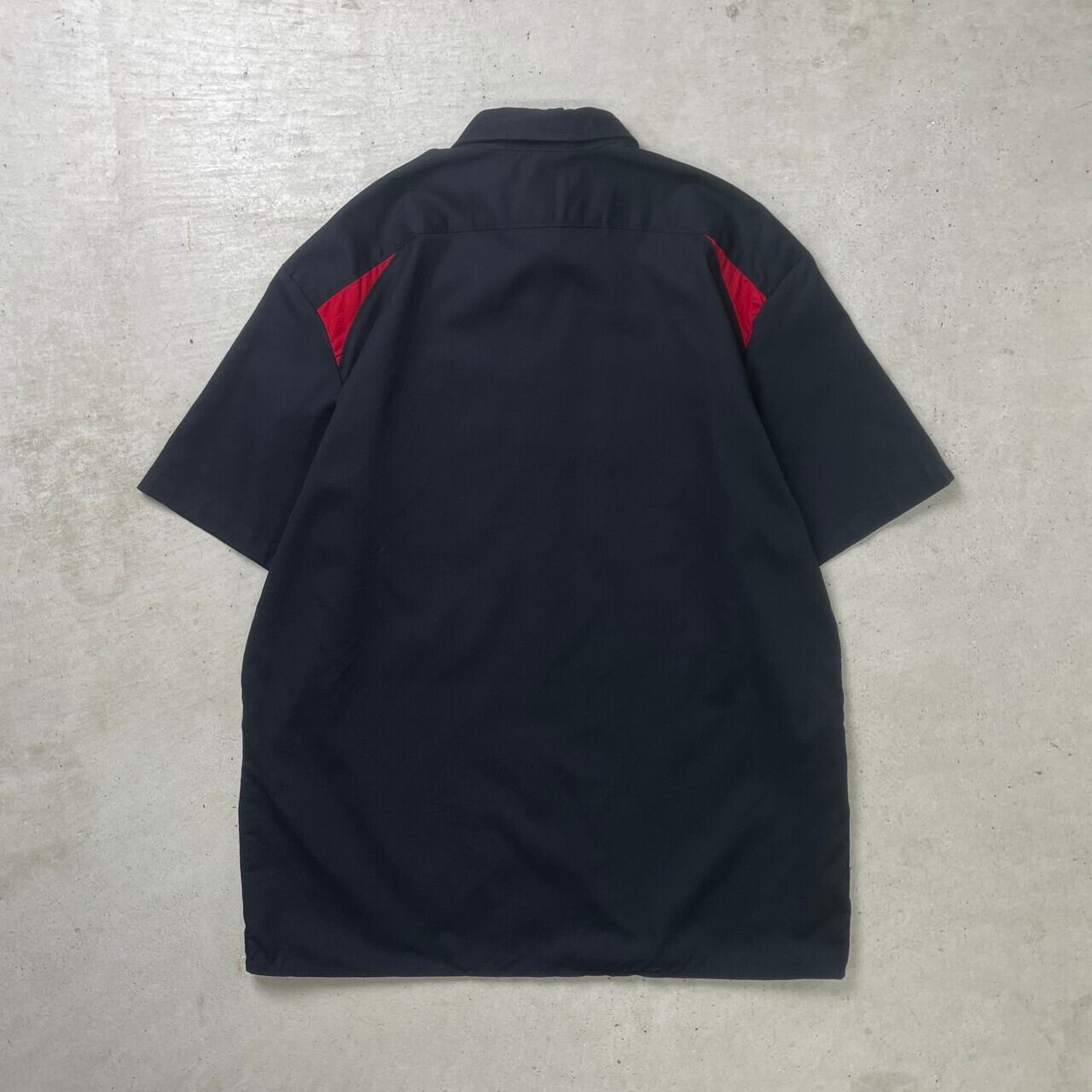 ■Dickies ディッキーズ ワークシャツ 半袖シャツ 企業ロゴ刺繍 メンズXL 古着 切り替えデザイン 刺繍 黒色【半袖シャツ】/ブラック