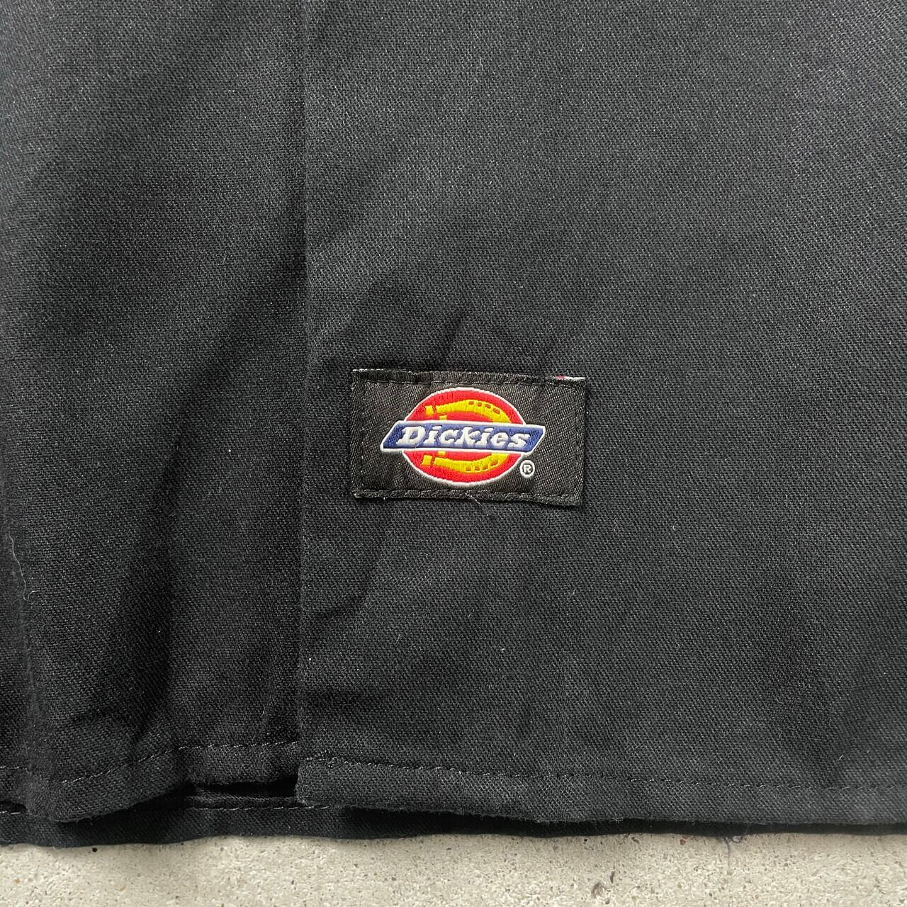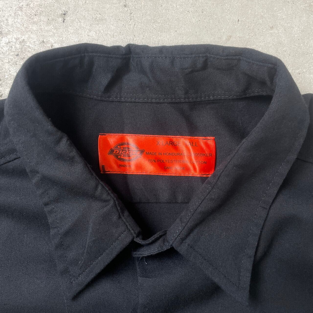 Dickies ディッキーズ ワークシャツ 半袖シャツ 企業ロゴ刺繍 メンズXL 古着 切り替えデザイン 刺繍 黒色【半袖シャツ】/ブラック【BS25-50】