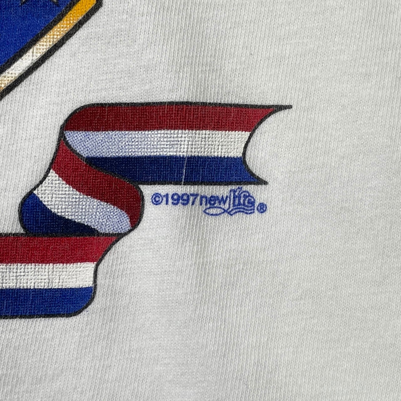 ■90年代 USA製 Proud To Be AMERICAN イーグル アメリカ 星条旗 プリントTシャツ メンズXL 古着 90s ヴィンテージ VINTAGE New Life 1997 アニマルプリント 鷹 白【Tシャツ】/ホワイト