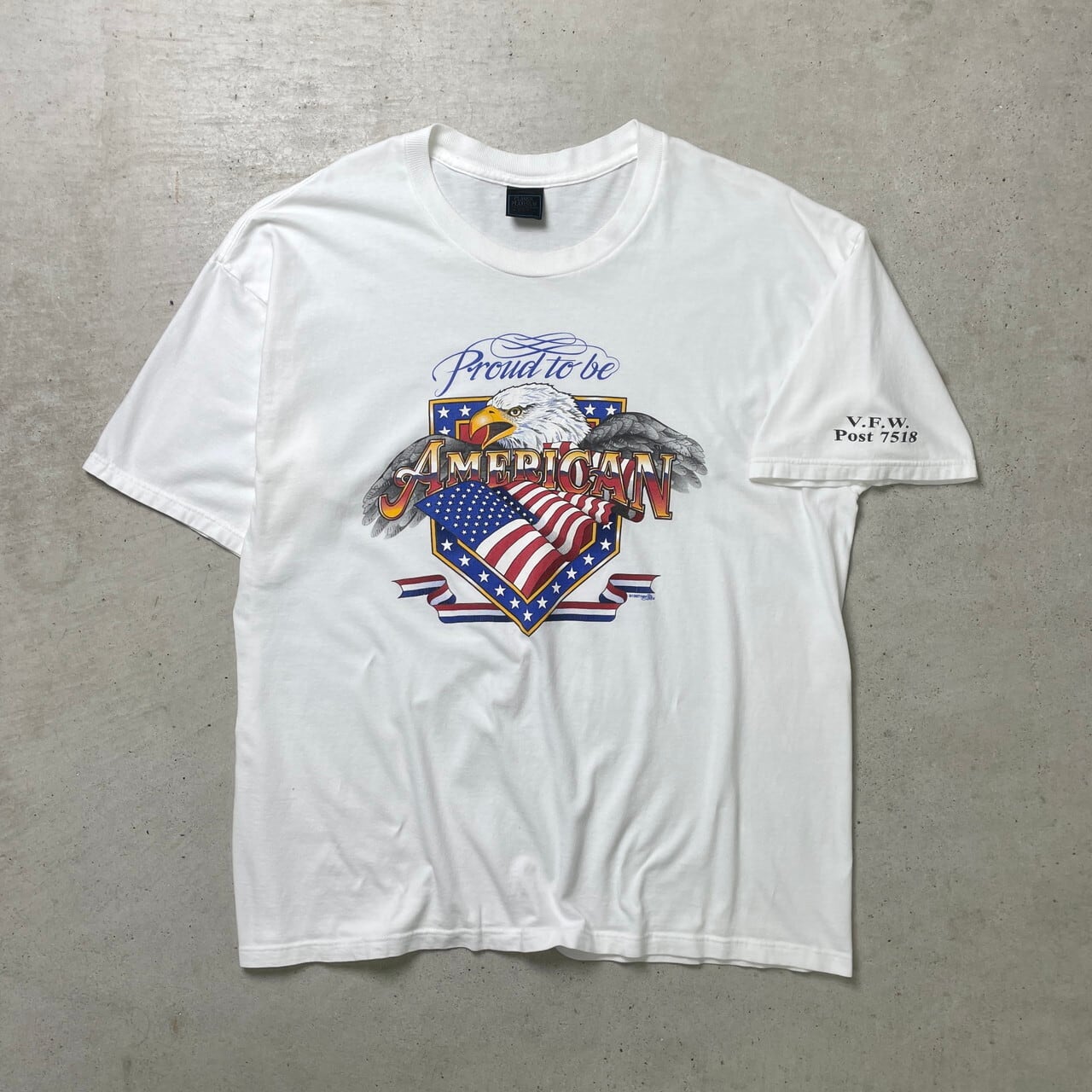 90年代 USA製 Proud To Be AMERICAN イーグル アメリカ 星条旗 プリントTシャツ メンズXL 古着 90s ヴィンテージ VINTAGE New Life 1997 アニマルプリント 鷹 白【Tシャツ】/ホワイト【SA2501-50】