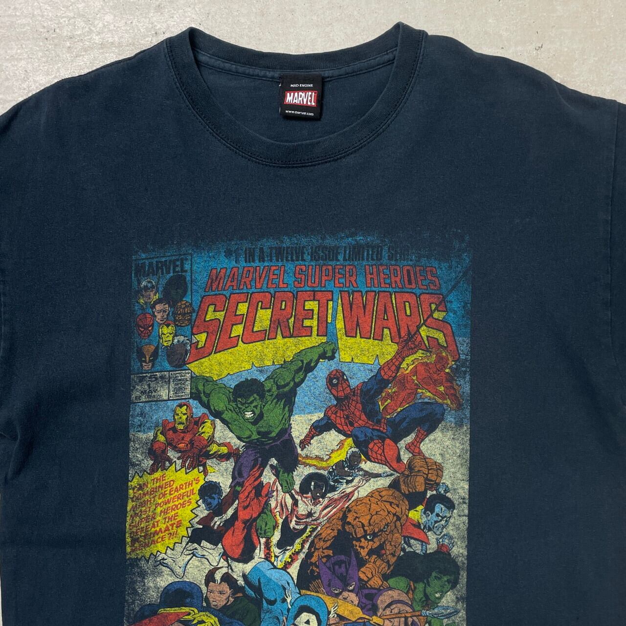 ■MARVEL マーベル SECRET WARS キャラクタープリント Tシャツ メンズM相当 古着 映画 ムービー コミック アメコミ フェードブラック【Tシャツ】/ブラック