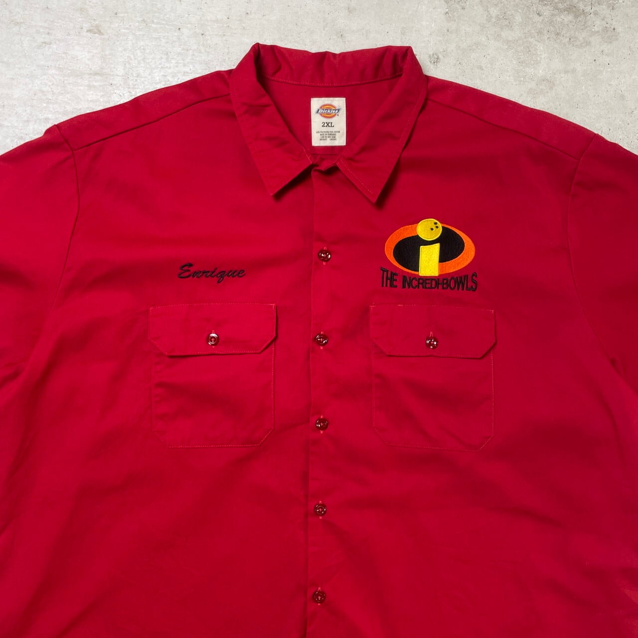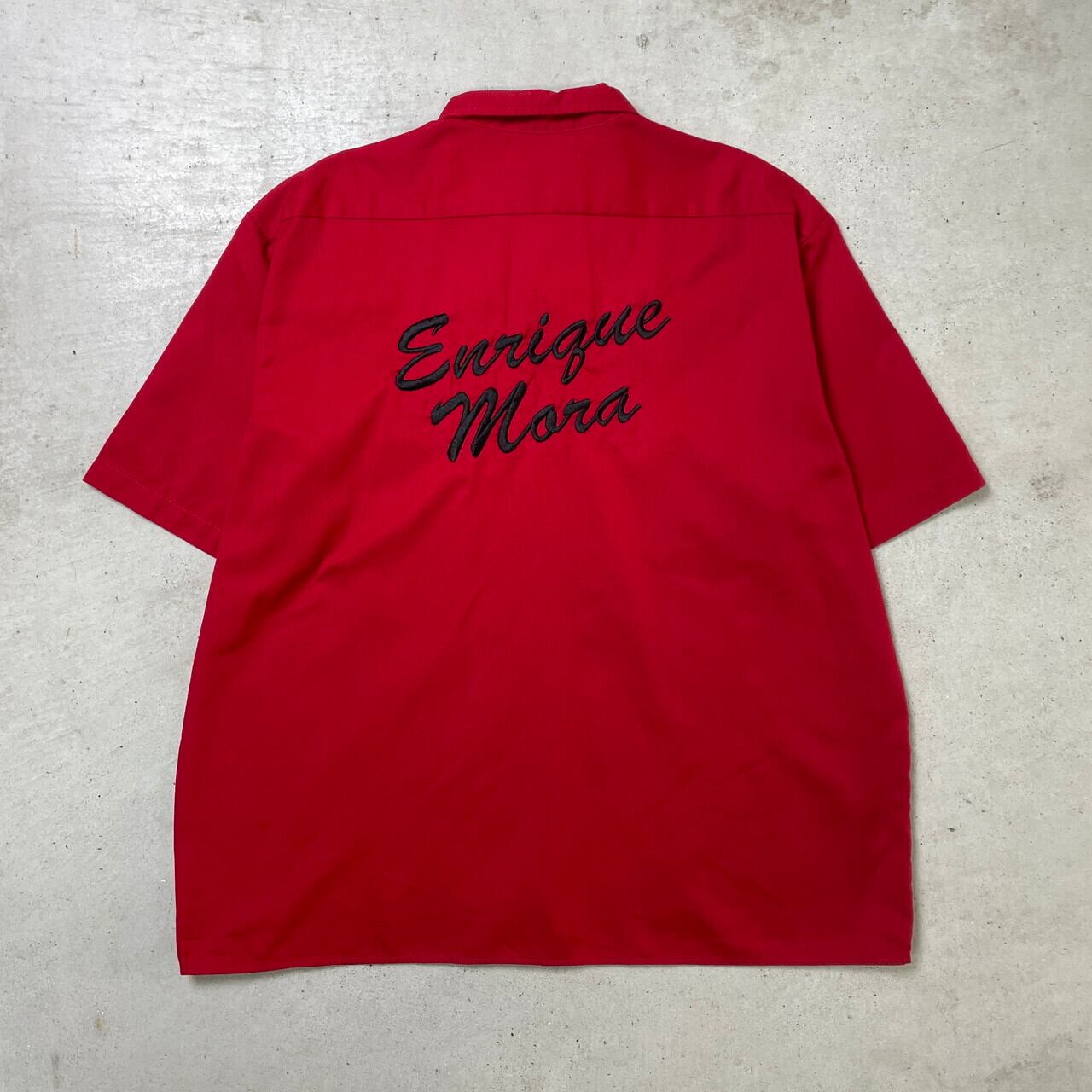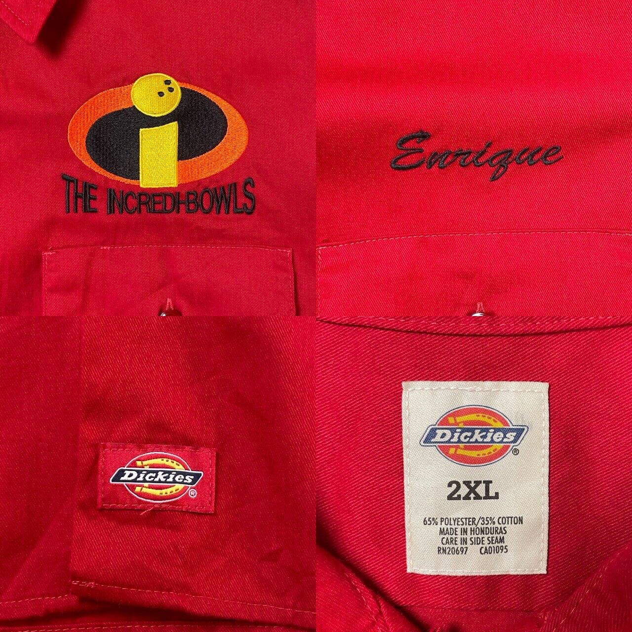 ■Dickies ディッキーズ ワークシャツ 半袖シャツ 企業ロゴ刺繍 パロディ メンズ2XL 古着 赤色【半袖シャツ】/レッド