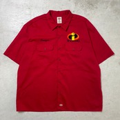 Dickies ディッキーズ ワークシャツ 半袖シャツ 企業ロゴ刺繍 パロディ メンズ2XL 古着 赤色【半袖シャツ】/レッド【BS25-50】