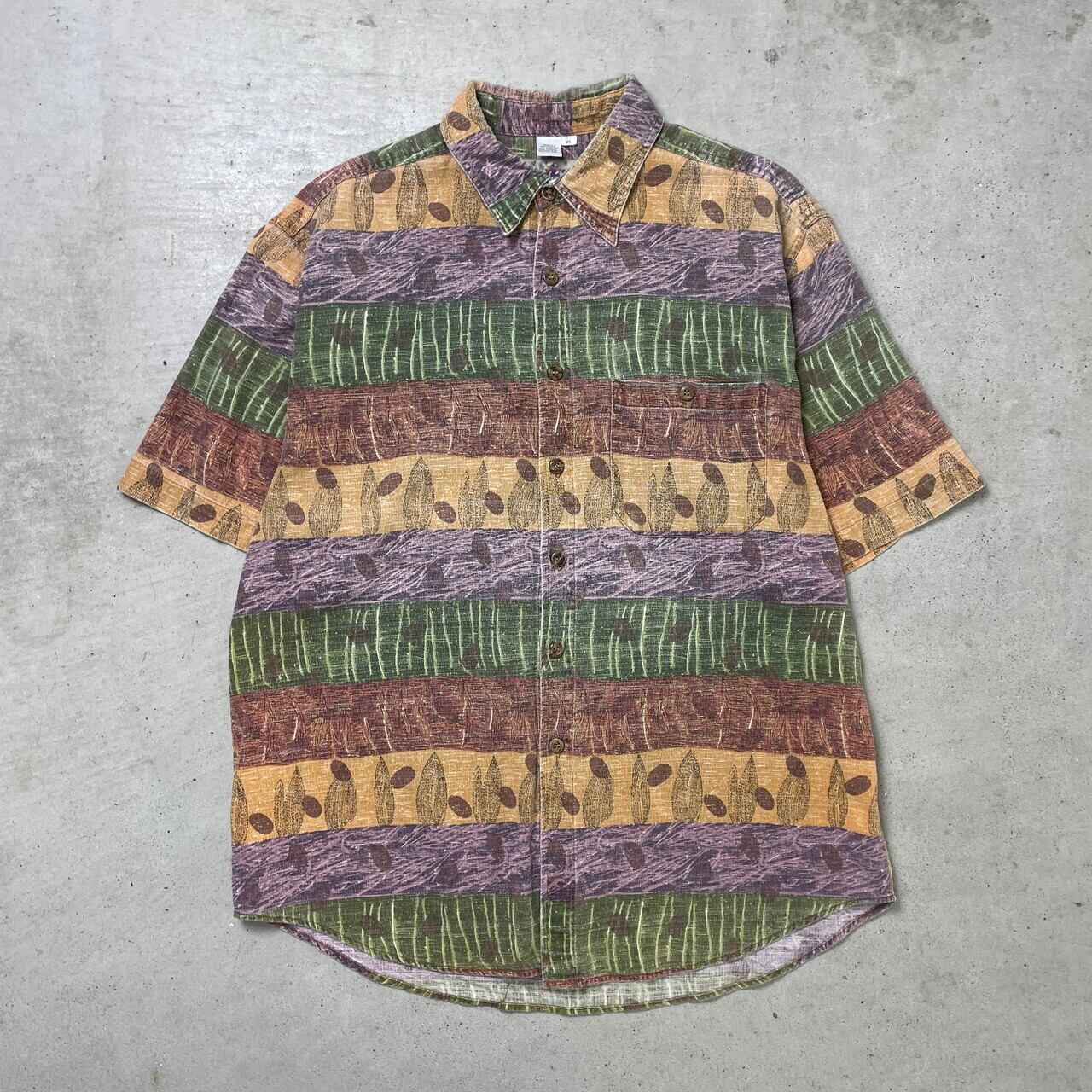 90年代 THE TERRITORY AHEAD 半袖 総柄シャツ メンズXL 古着 90s ヴィンテージ VINTAGE ボーダー【半袖シャツ】/マルチカラー【BS25-50】