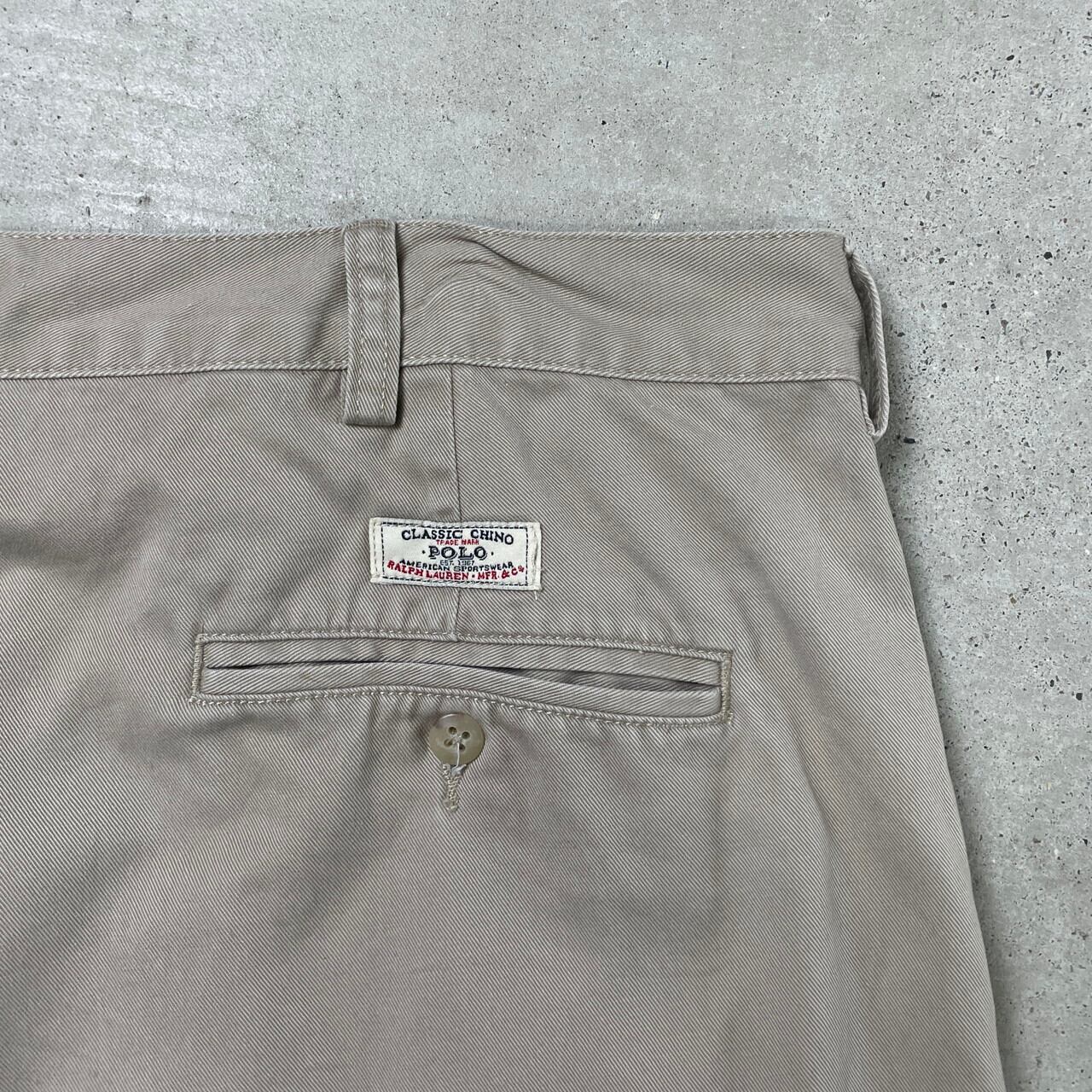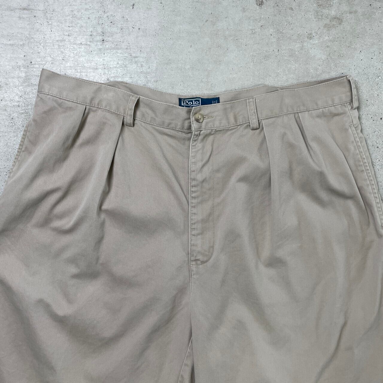 90年代 Polo by Ralph Lauren ポロバイラルフローレン 2タック ワイド チノ ショーツ ショートパンツ TYLER SHORT メンズW40 古着 ビッグサイズ 大きいサイズ 90s ヴィンテージ VINTAGE ポロチノ ハーフパンツ カーキ 【ショートパンツ】/ベージュ
