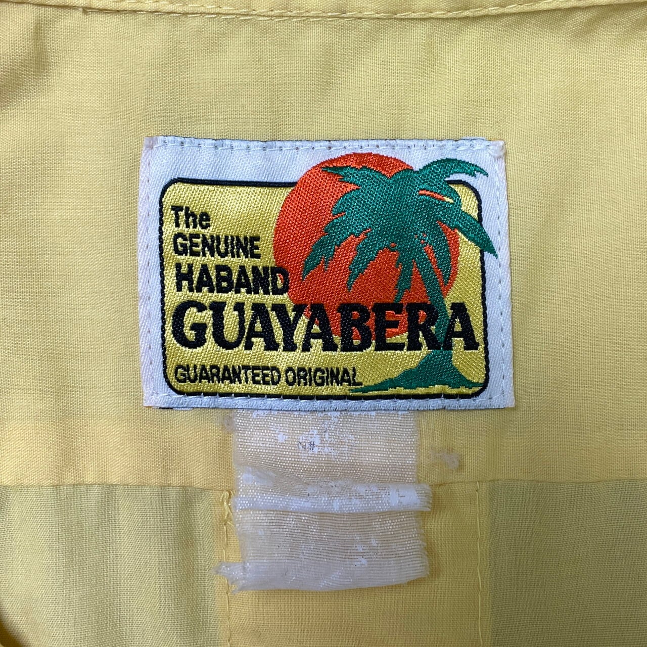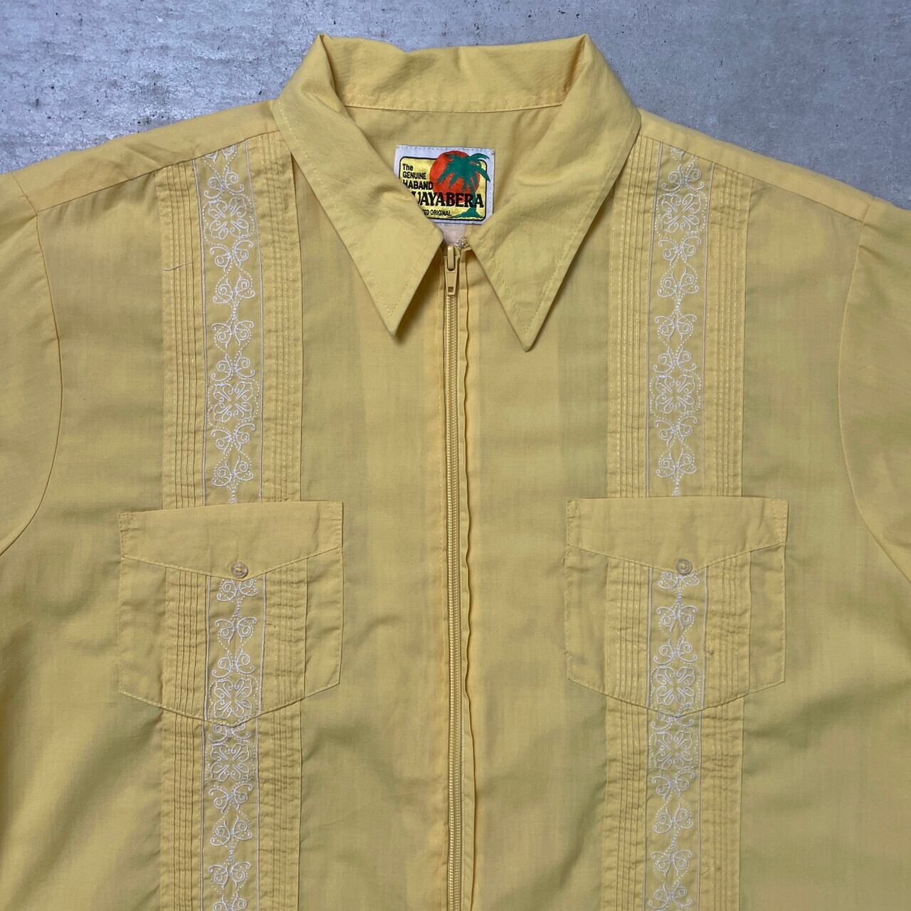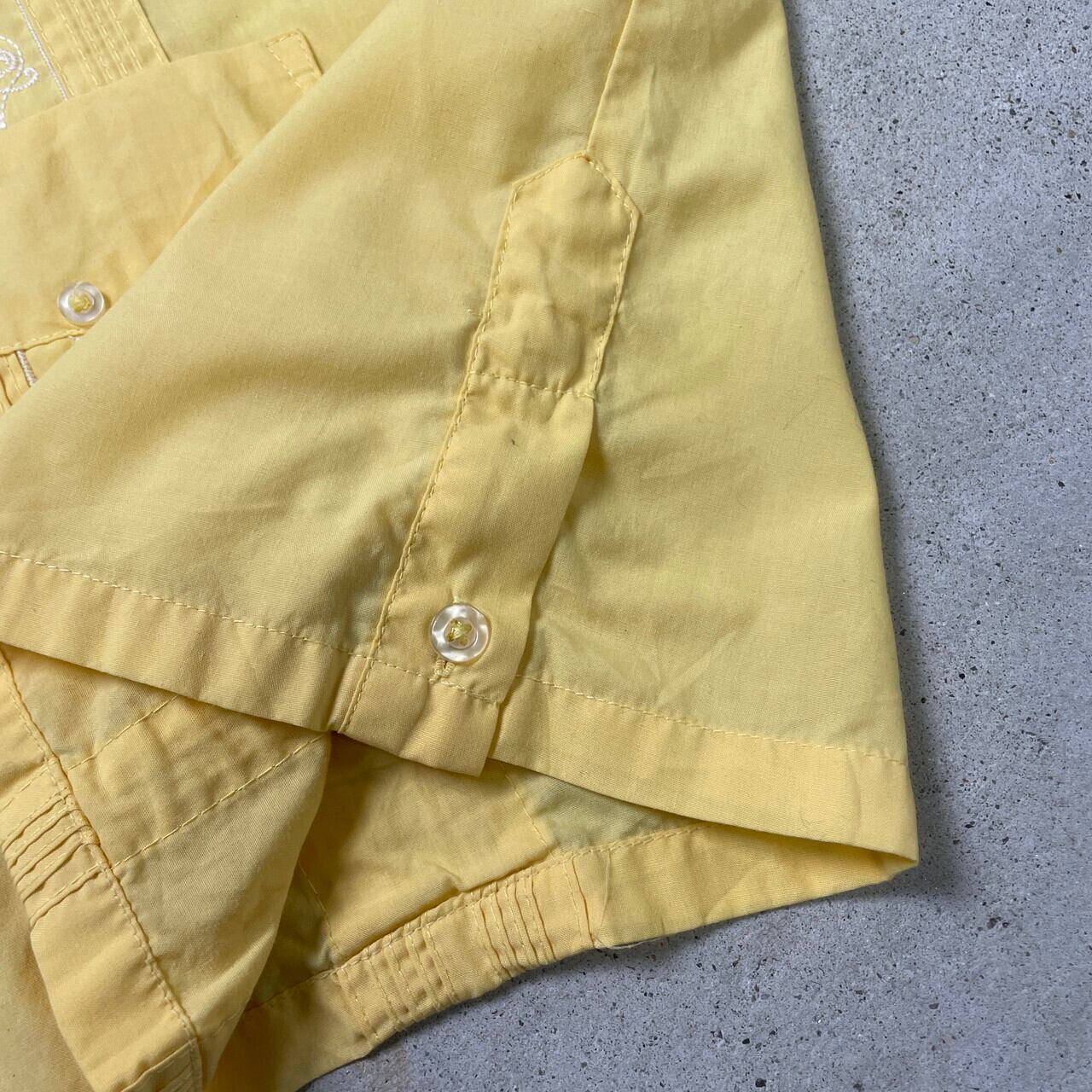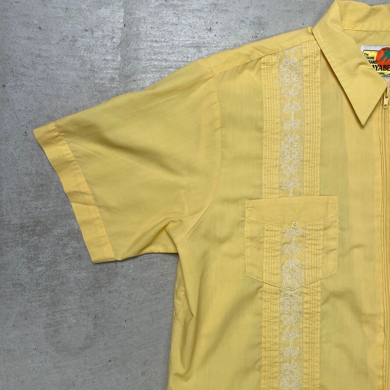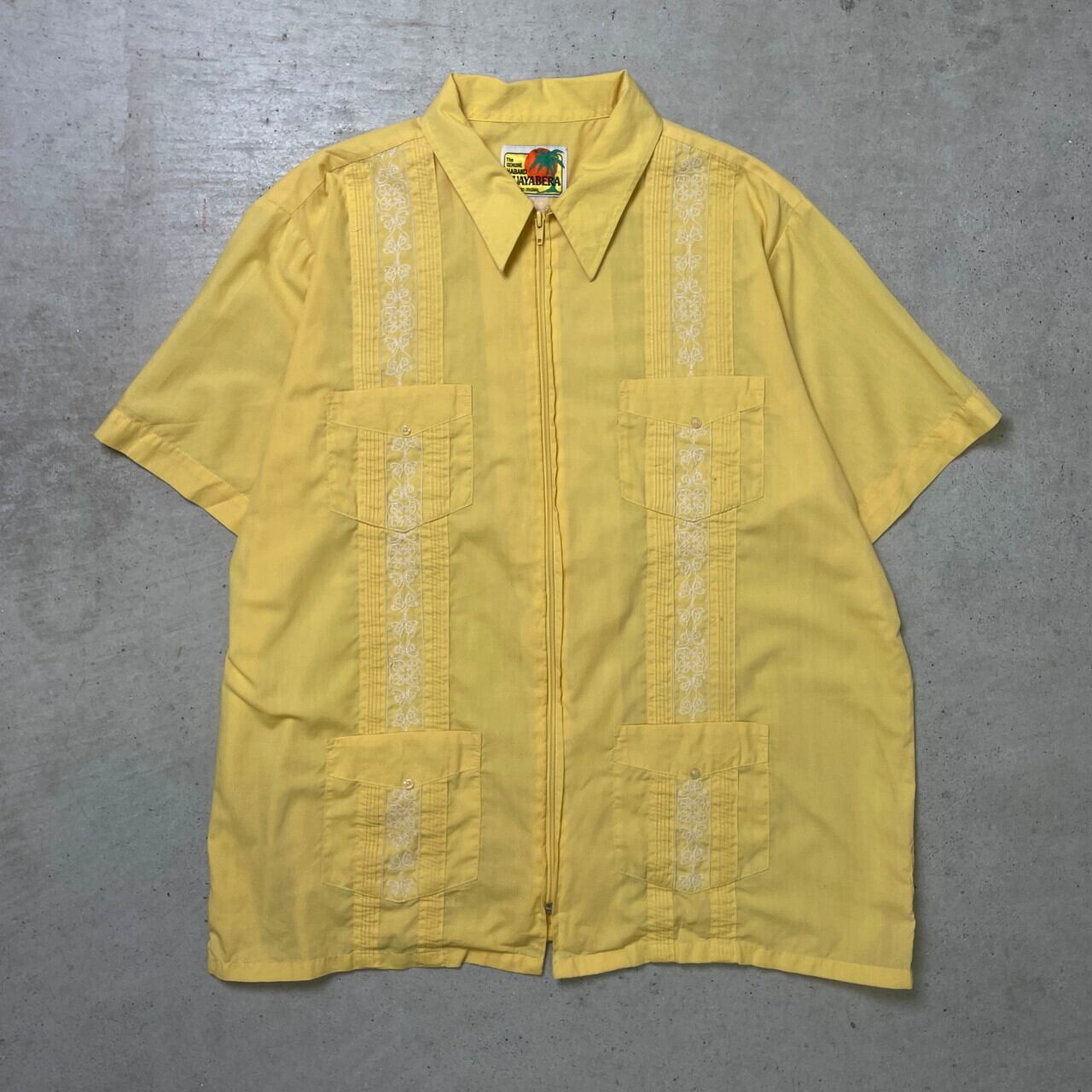 GUAYABERA キューバシャツ メキシカンシャツ フルジップ メンズ2XL相当 古着 刺繍 黄色【半袖シャツ】/イエロー【BS25-50】