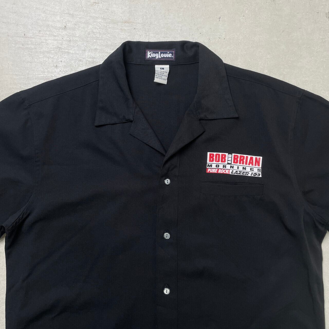 ■BOB AND BRIAN MORNINGS PURE ROCK LAZER 103 ボーリングシャツ 開襟 メンズL 古着 オープンカラーシャツ 00s VINTAGE ヴィンテージ 開襟 HARLEY-DAVIDSON ハーレー バックプリント 黒【半袖シャツ】/ブラック
