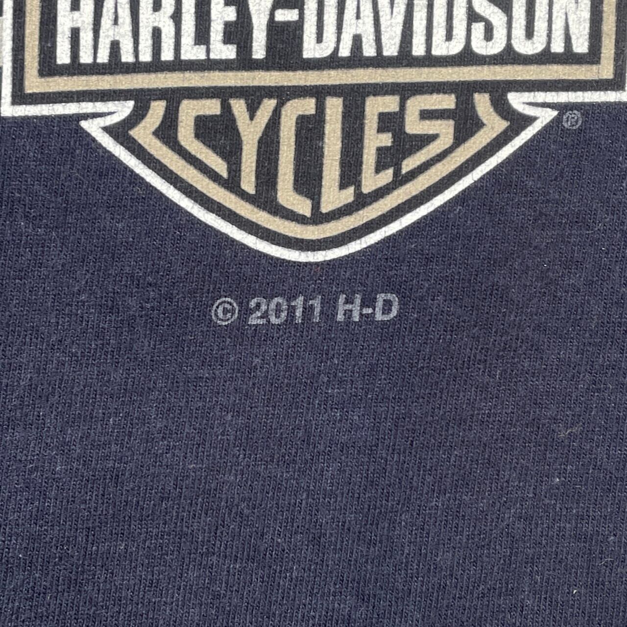 ■Harley-Davidson ハーレーダビッドソン ポケットTシャツ ポケT メンズXL 古着 バイク モーターサイクル VINTAGE 両面プリント 紺【Tシャツ】/ネイビー