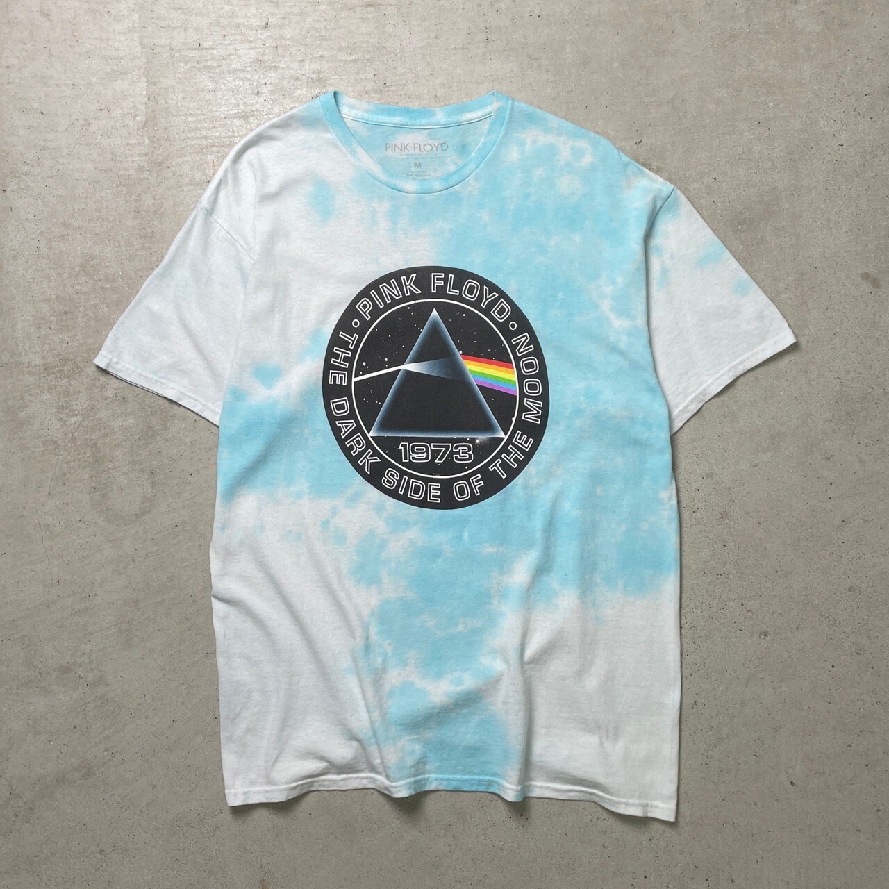 ■PINK FLOYD THE DARK SIDE OF THE MOON ピンクフロイド 狂気 タイダイ染め バンドTシャツ メンズM 古着 アーティスト バンT ライトブルー ホワイト 白【Tシャツ】/ブルー