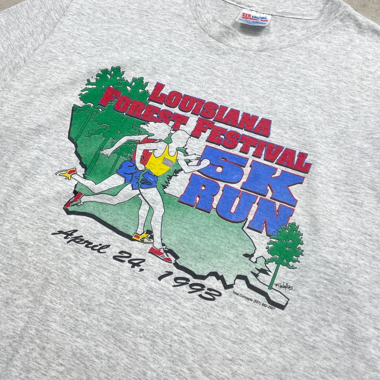 90年代 USA製 LOUISIANA FOREST FESTIVAL マラソン プリントTシャツ メンズXL 古着 90s シングルステッチ ヴィンテージ VINTAGE 灰色【Tシャツ】/グレー【SA2501-50】