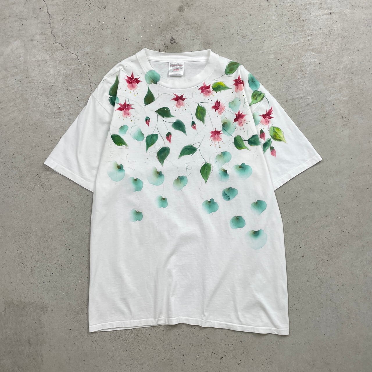 ■90年代 USA製 フラワー柄 ハンドペイントTシャツ メンズL 古着 90s シングルステッチ ヴィンテージ VINTAGE 白色【Tシャツ】/ホワイト
