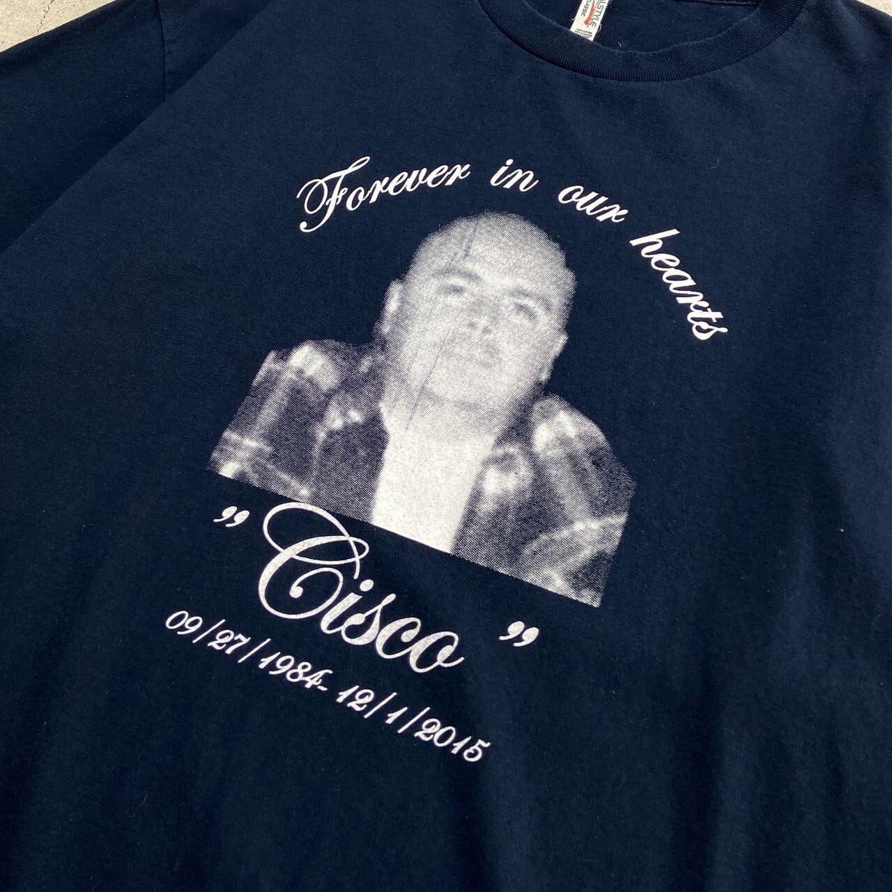 00年代 Cisco 追悼プリントTシャツ 誰やねんT メンズ2XL 古着 00s Y2K 人物 黒色【Tシャツ】/ブラック【SA2501-50】【SS50】