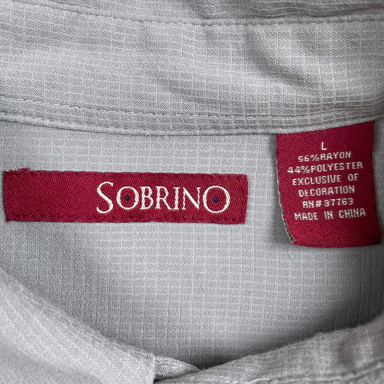 ■SOBRINO 半袖シャツ メキシカンシャツ メンズL 古着 アメカジ 切り替えデザイン 灰色 白色【半袖シャツ】/グレー
