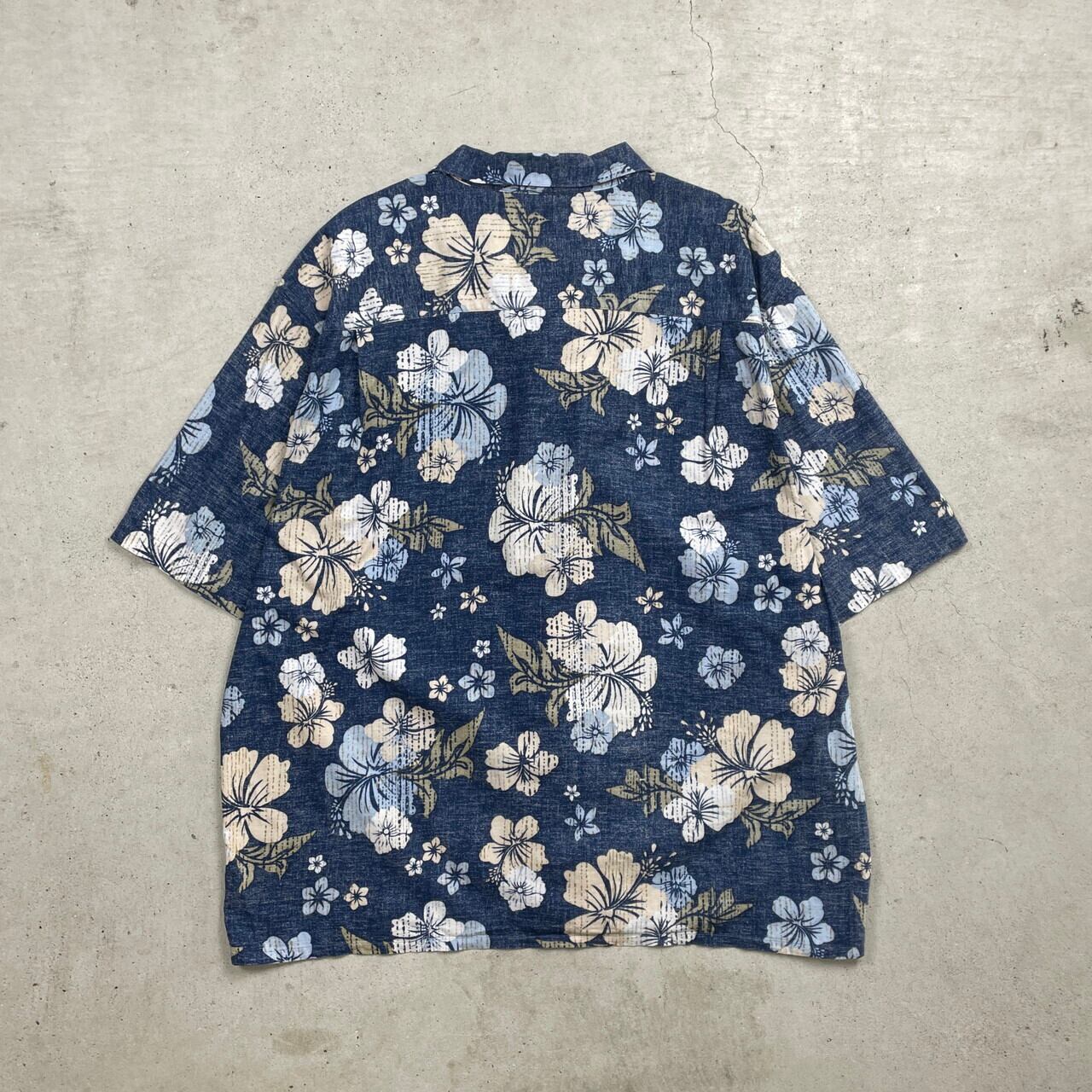 ■90年代~00年代 Ocean Pacific オーシャン パシフィック アロハシャツ 開襟シャツ サーフ メンズXXL 古着 90s 00s 半袖シャツ オープンカラーシャツ アメカジ 総柄 インサイドアウト リバースプリント 【半袖シャツ】/ブルー