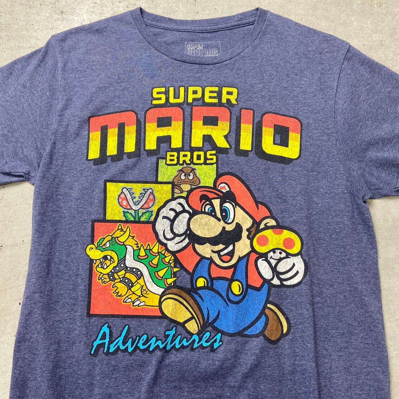 SUPER MARIO BROS スーパーマリオブラザーズ キャラクタープリントTシャツメンズM 古着 NINTENDO 任天堂 ゲーム くすみネイビー 紺色 【Tシャツ】/ネイビー【SA2501-50】【SS50】
