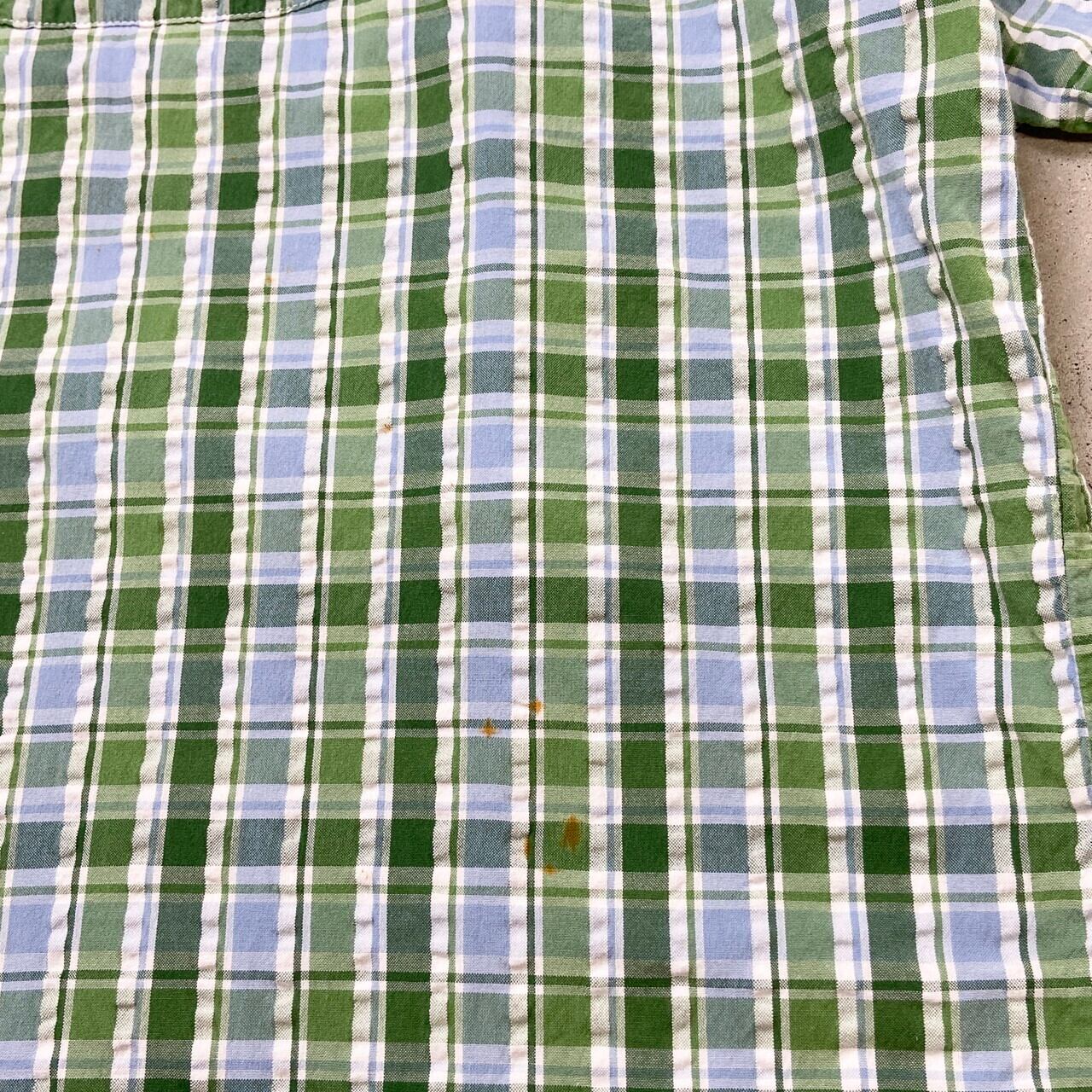 ■L.L.Bean エルエルビーン 半袖シャツ シアサッカー チェック柄 メンズXL 古着 ライトブルー 水色 ホワイト 白 ライトグリーン 黄緑【半袖シャツ】/グリーン