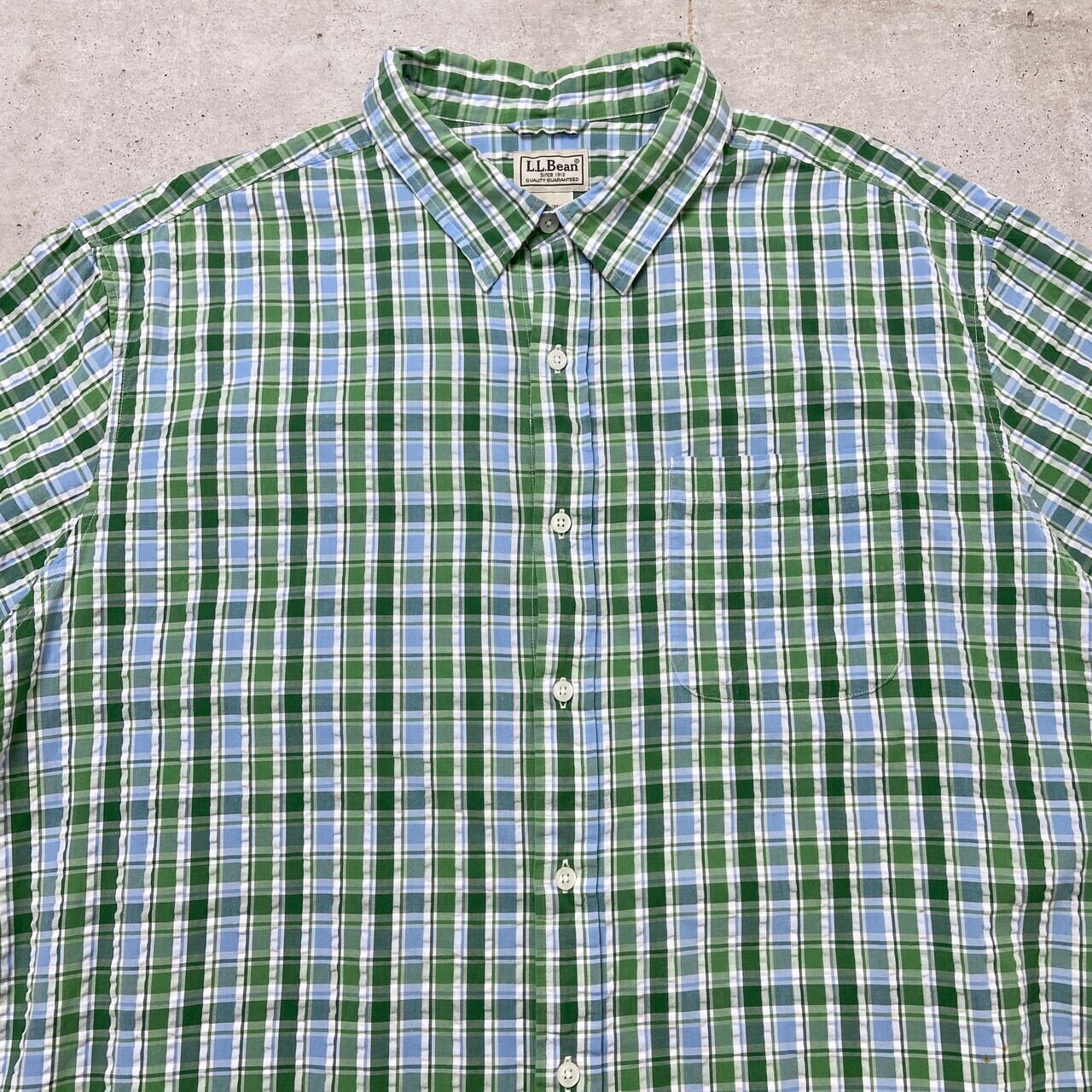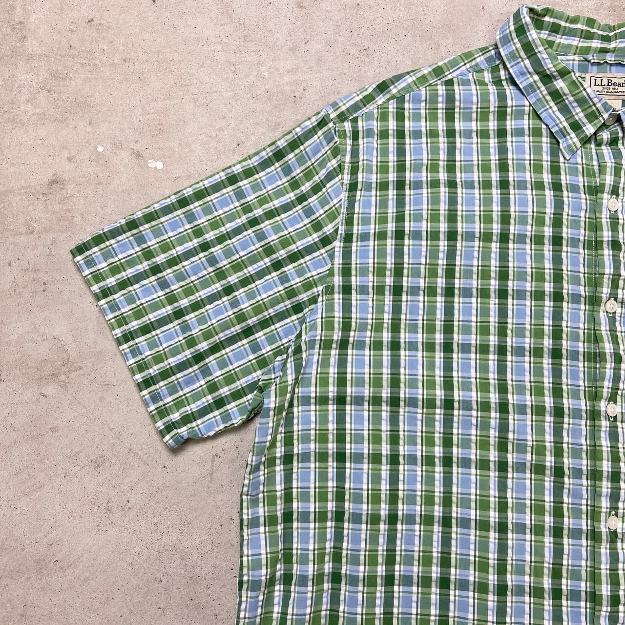 L.L.Bean エルエルビーン 半袖シャツ シアサッカー チェック柄 メンズXL 古着 ライトブルー 水色 ホワイト 白 ライトグリーン 黄緑【半袖シャツ】/グリーン【SS2408-40】