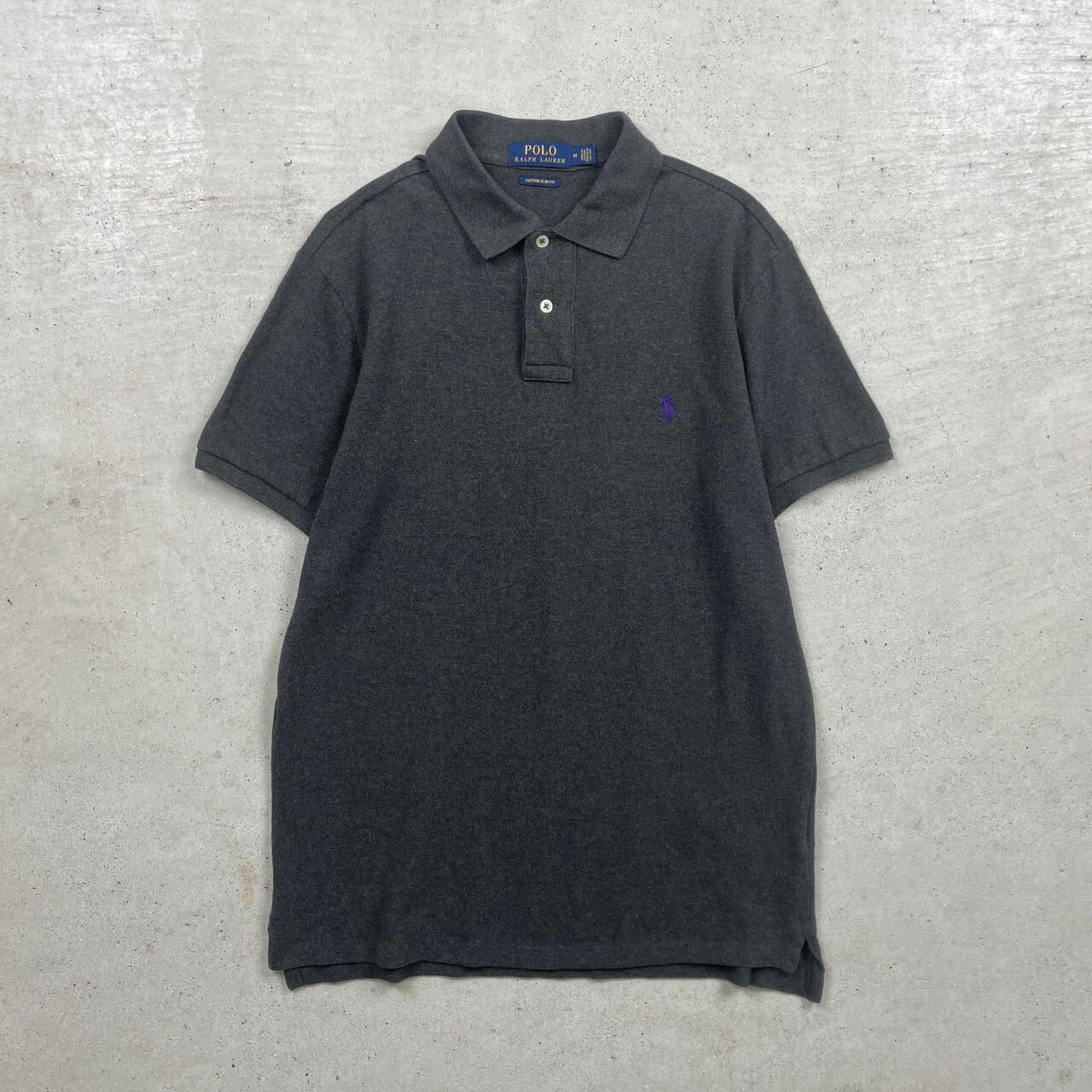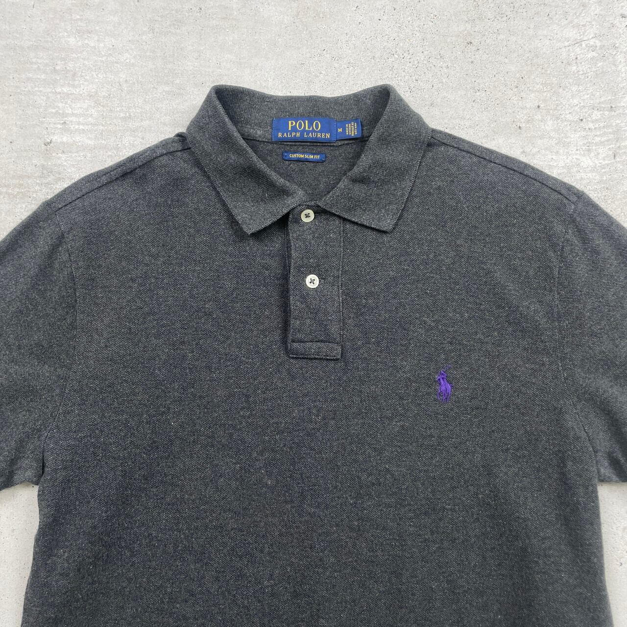 ■Polo Ralph Lauren ポロラルフローレン ポロシャツ 鹿の子 メンズM 古着 ワンポイントロゴ刺繍 カラーネップ チャコールグレー 灰色【ポロシャツ・ラガーシャツ】/グレー