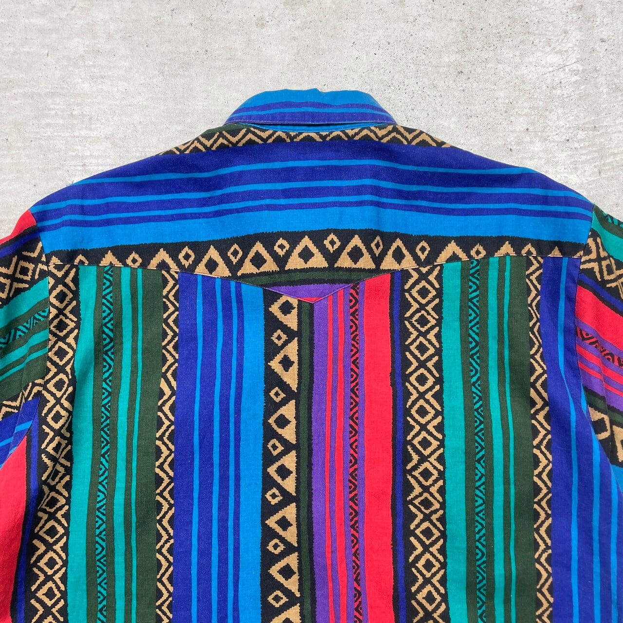 90年代 Wrangler WESTERN SHIRTS ラングラー ネイティブ柄 半袖シャツ ウエスタンシャツ 総柄 メンズL 古着 90s ヴィンテージ VINTAGE ボタンダウン 【半袖シャツ】/マルチカラー【SA2501-50】