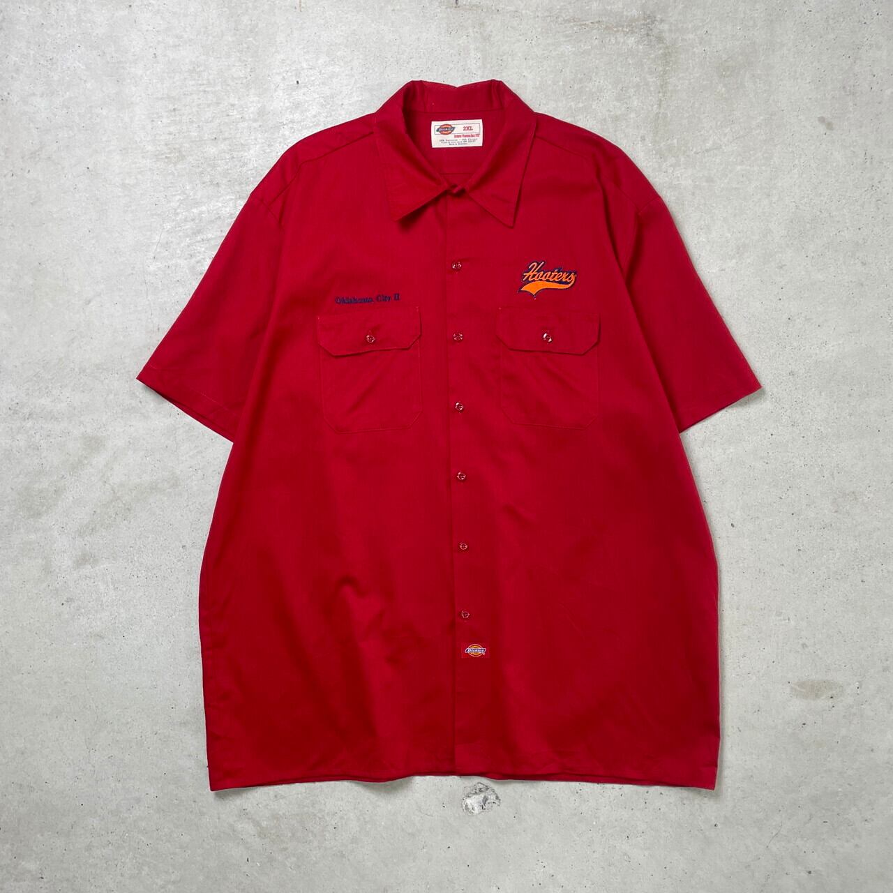 00年代 Dickies ディッキーズ 半袖 ワークシャツ HOOTERS 企業ロゴ刺繍 メンズ2XL古着 00s VINTAGE ヴィンテージ ビッグサイズ 大きいサイズ レストラン 赤【半袖シャツ】/レッド【SA2501-50】