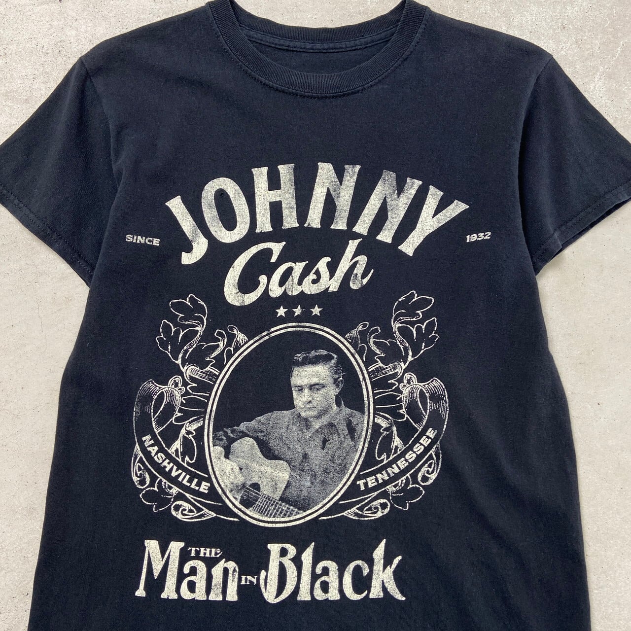 Johnny Cash MAN IN BLACK アーティスト バンドTシャツ バンT レディースS 古着 ジョニー・キャッシュ 黒色【Tシャツ】/ブラック【SA2501-50】