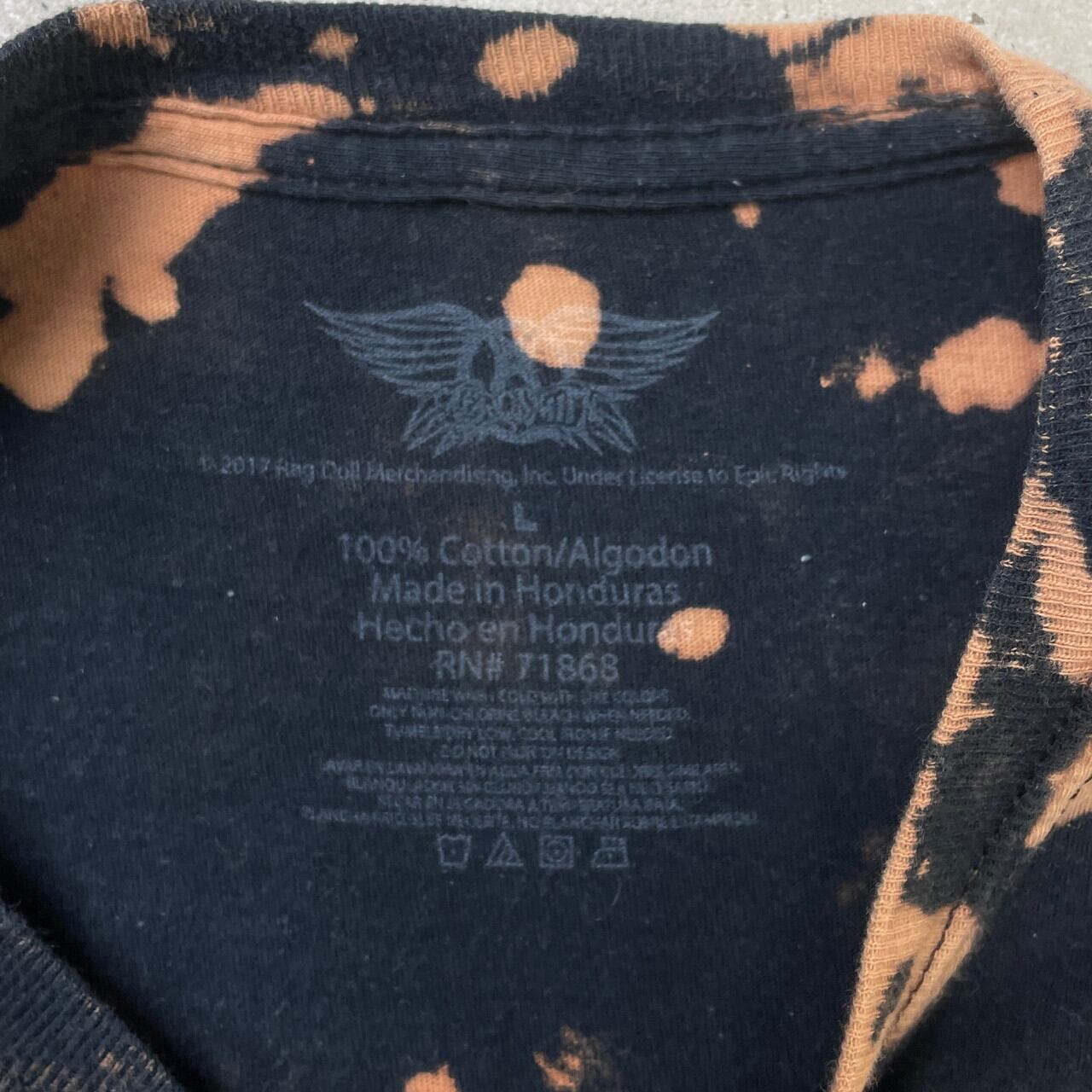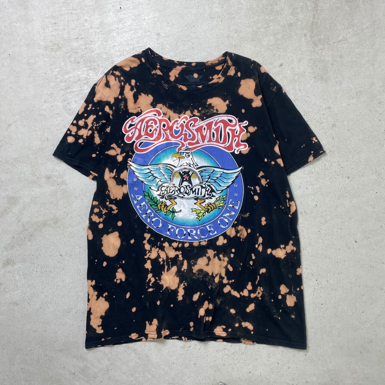 ■AEROSMITH エアロスミス エアロフォースワン バンドTシャツ タイダイ染め バンTメンズL 古着 ファンクラブTシャツ バンT 黒色 オレンジ フェードブラック【Tシャツ】/マルチカラー