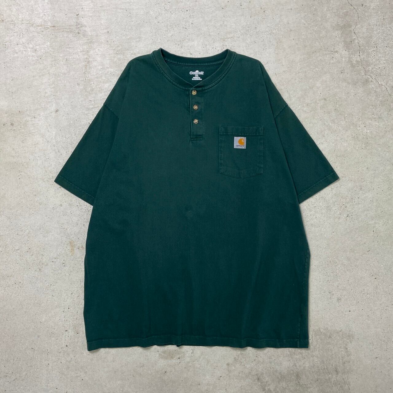 ■Carhartt カーハート ヘンリーネック ポケットTシャツメンズXL 古着 緑【Tシャツ】/グリーン