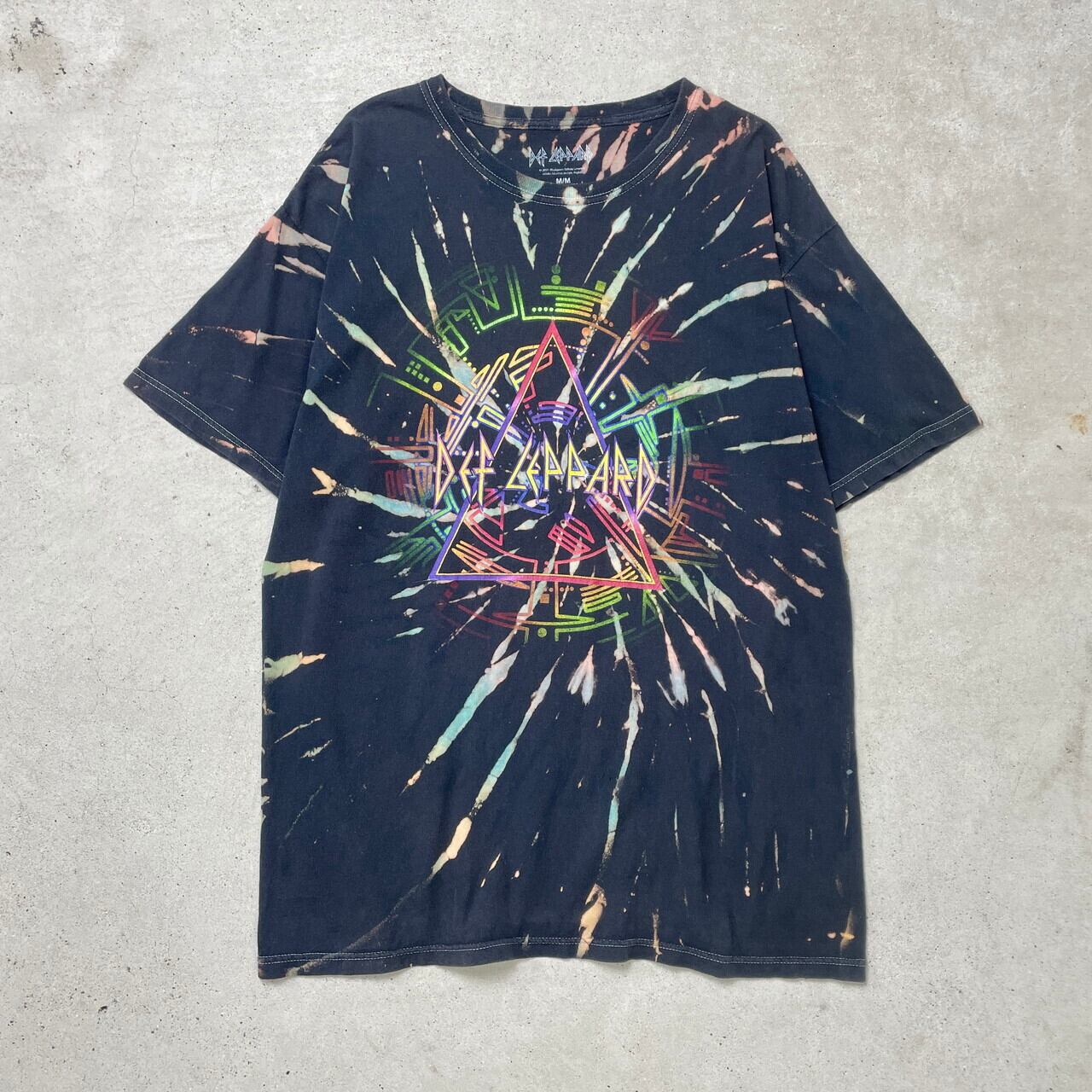 ■DEF LEPPARD デフレパード バンドTシャツ バンT タイダイ染め メンズL相当 古着 ブリーチ加工 黒色【Tシャツ】/ブラック