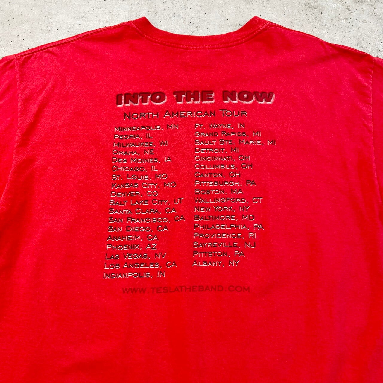 ■TESLA テスラ バンドTシャツ バンT ツアーT メンズXL 古着 LAメタル 両面プリント 赤【Tシャツ】/レッド
