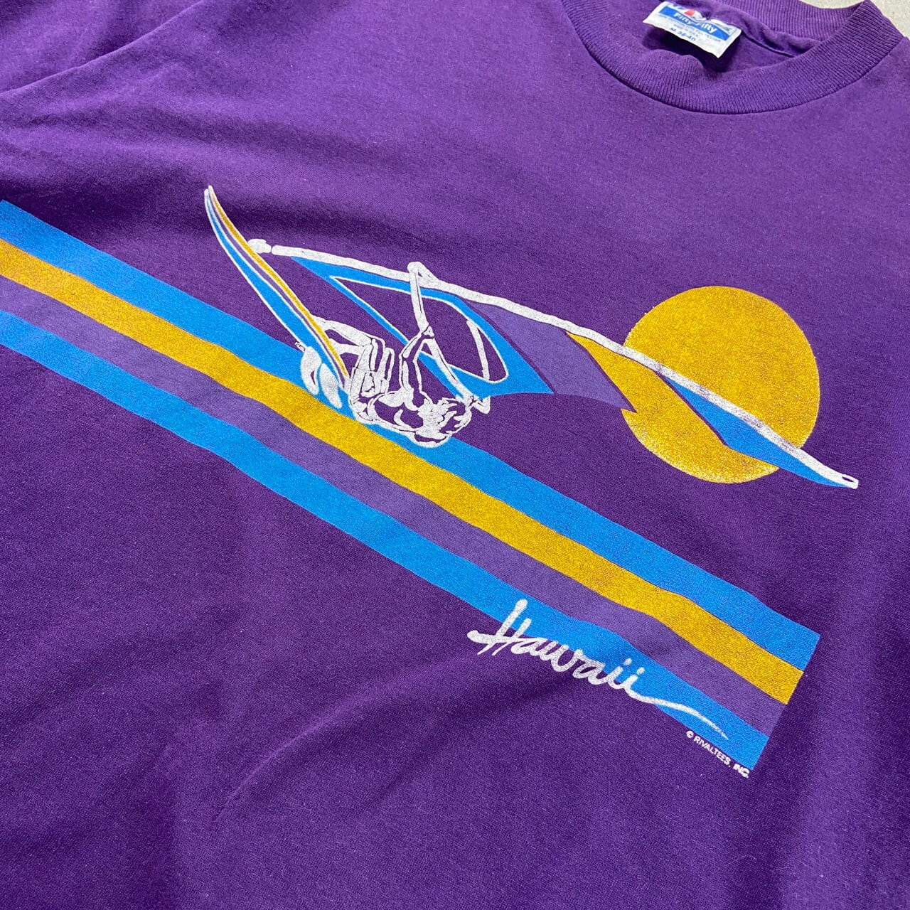 80年代〜90年代 USA製 Hawaii ハワイ スーベニア プリントTシャツ メンズM 古着 80s 90s ヴィンテージ VINTAGE シングルステッチ 紫【Tシャツ】/パープル【SA2501-50】