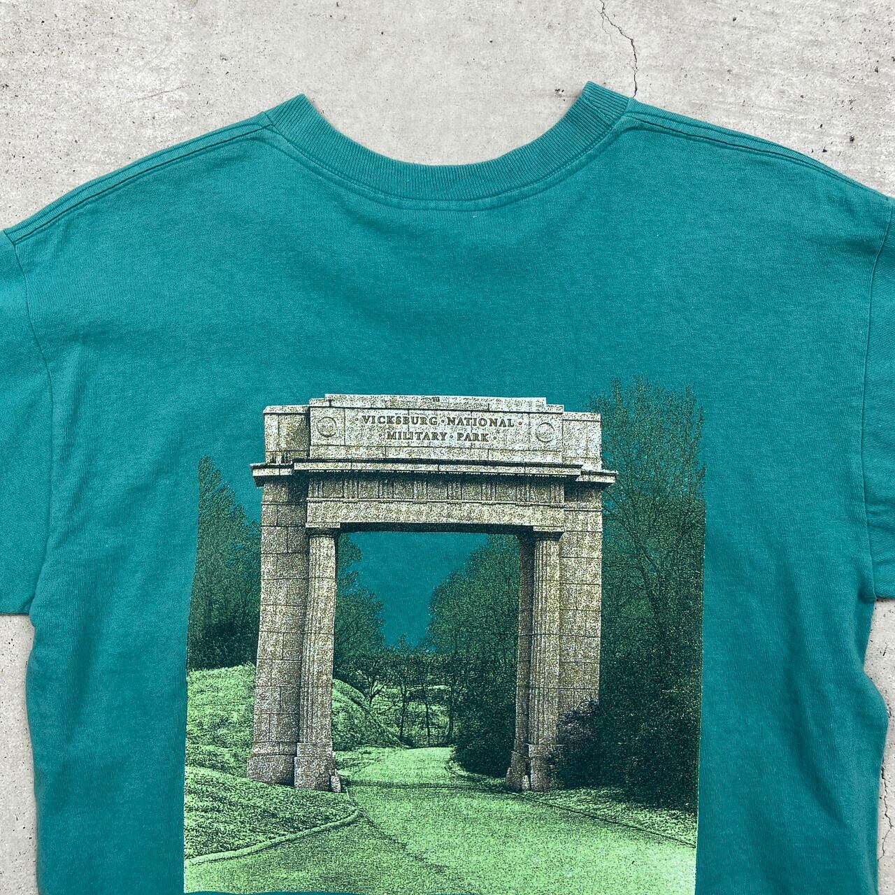 90年代 USA製 VICKSBURG NATIONAL MILITARY PARK スーベニアプリントTシャツ アート メンズM 古着 90s ヴィンテージ VINTAGE ミントグリーン 緑色【Tシャツ】/グリーン【SA2501-50】