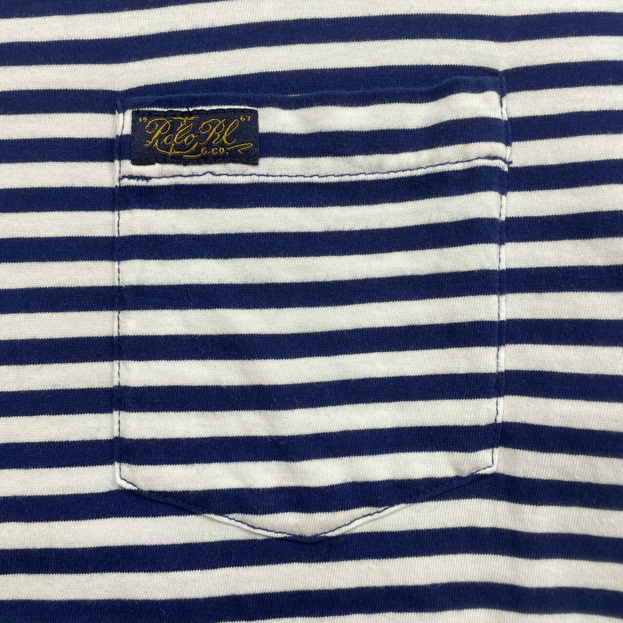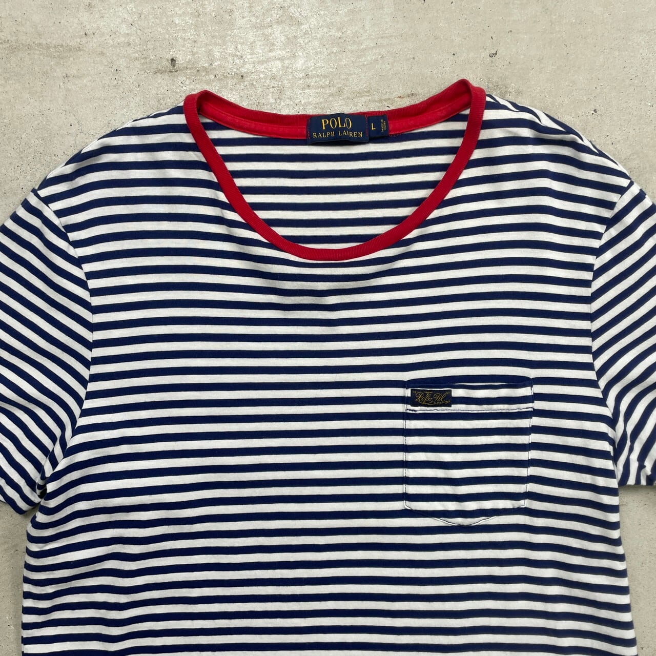 ■Polo Ralph Lauren ポロラルフローレン ボーダーTシャツ ポケットTシャツ メンズL 古着 マリンルック 細ピッチ ワンポイントロゴ刺繍 ポケT ホワイト ネイビー レッド 白 紺色 赤色【Tシャツ】/マルチカラー