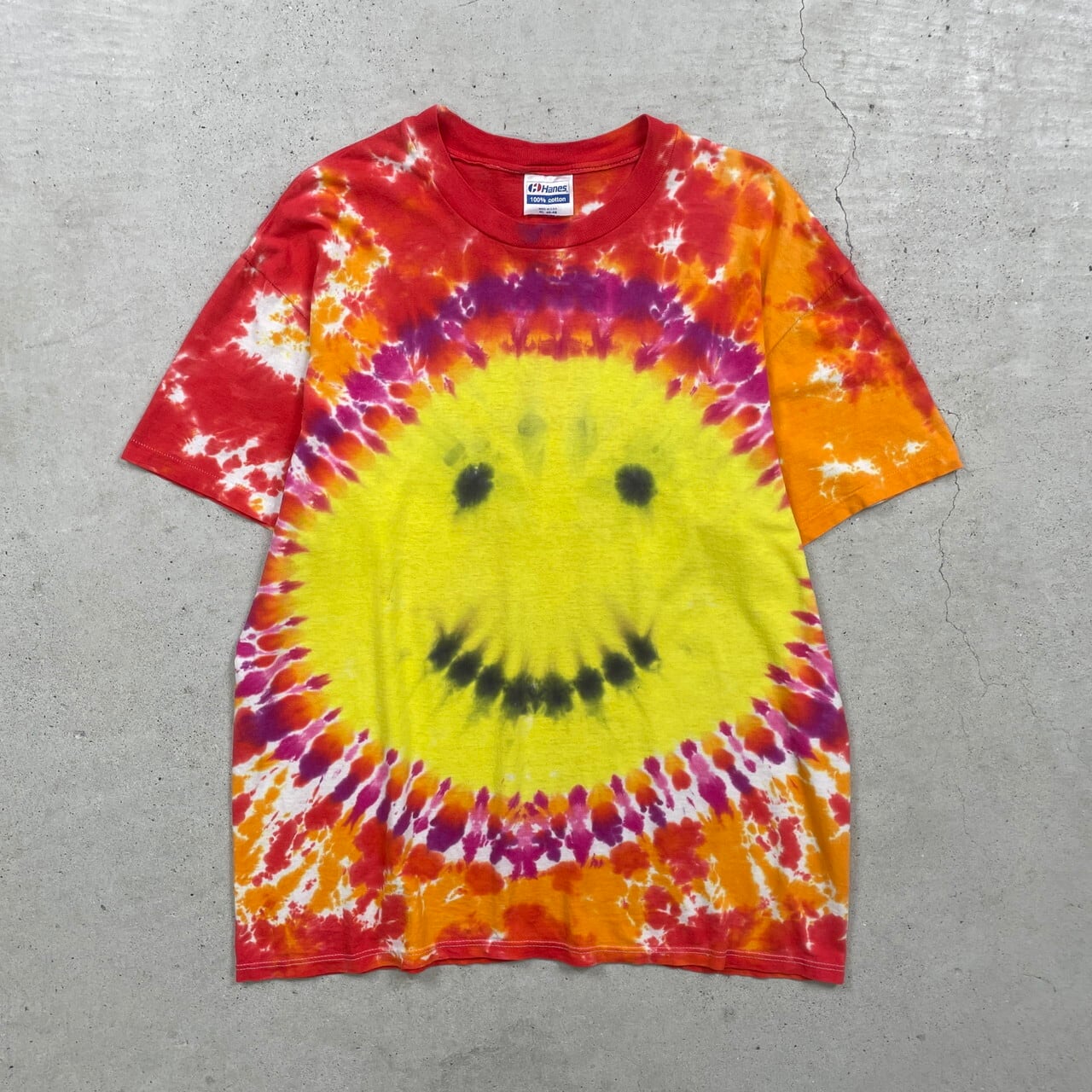 ■80年代 USA製 SMILE スマイル タイダイ染め プリントTシャツ ニコちゃん メンズXL 古着 80s シングルステッチ ヴィンテージ VINTAGE【Tシャツ】/マルチカラー