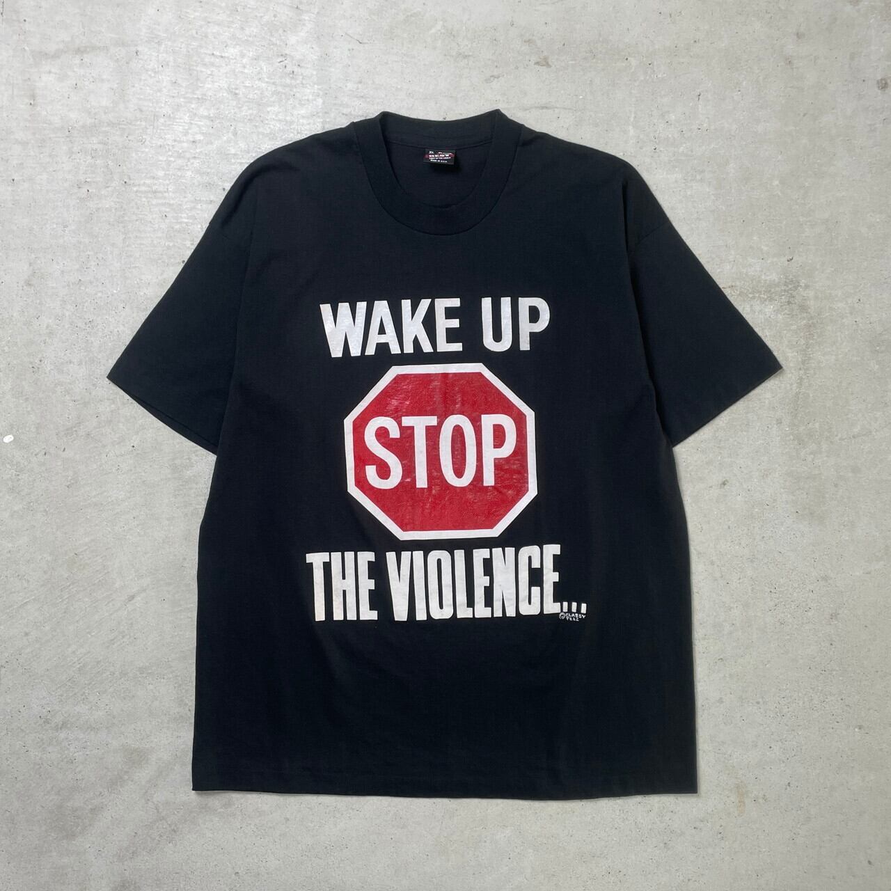 90年代 USA製 WAKE UP STOP THE VIOLENCE メッセージプリントTシャツ メンズXL 古着 90s シングルステッチ ヴィンテージ VINTAGE 黒色【Tシャツ】/ブラック【SA2501-50】