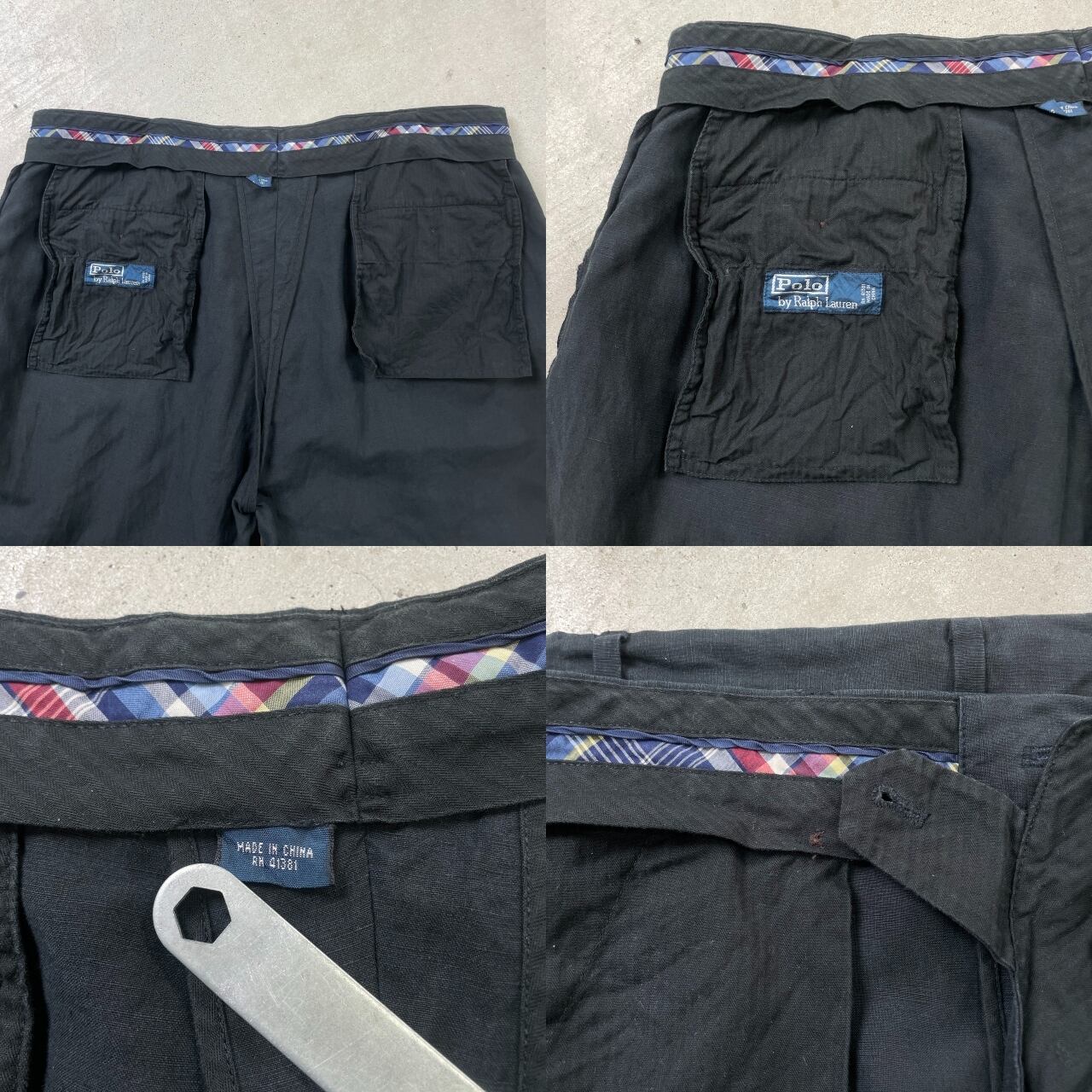 ■90年代 Polo by Ralph Lauren ポロバイラルフローレン リネン シルク スラックスパンツ メンズW36 古着 90s VINTAGE ヴィンテージ 黒色【スラックス,スタプレ】/ブラック