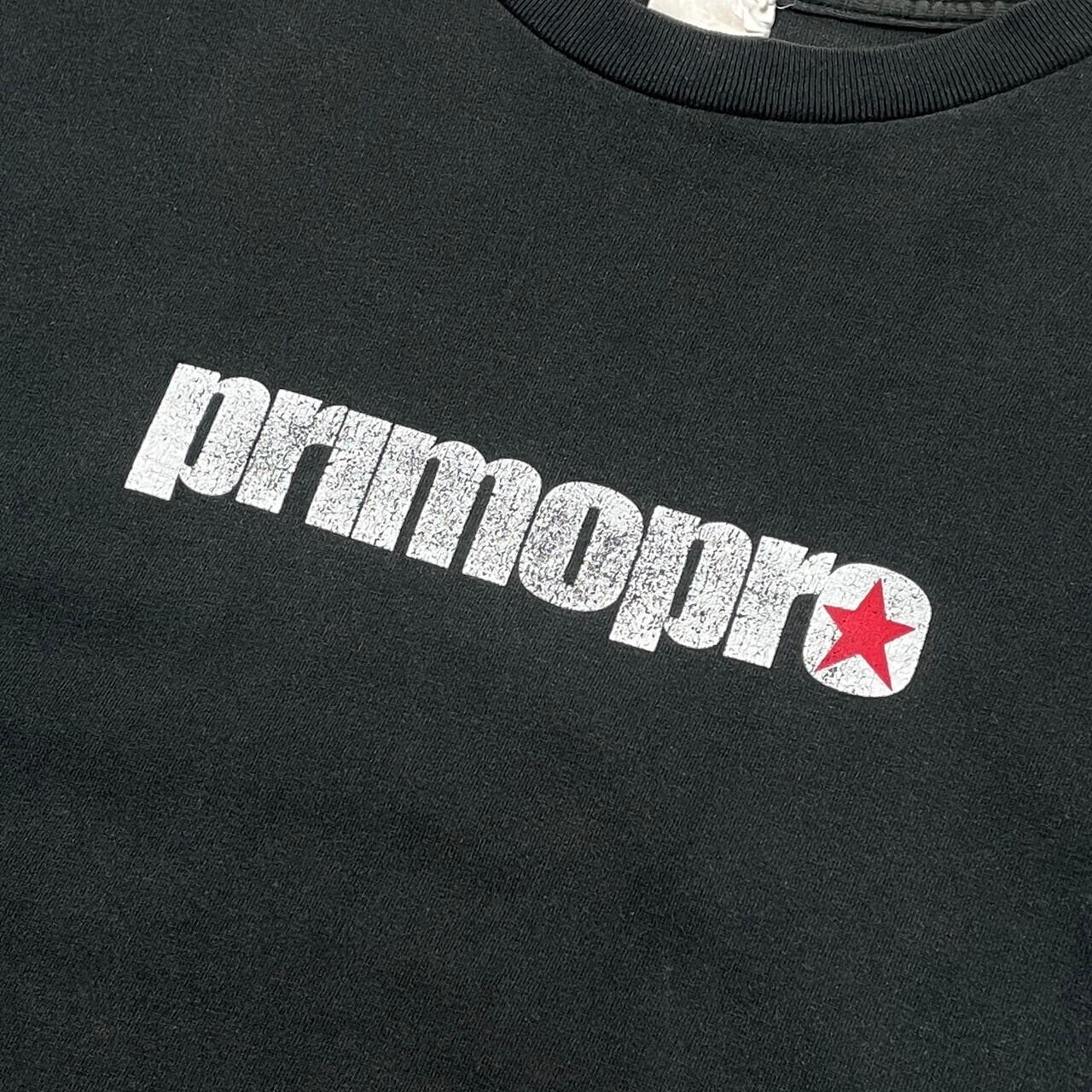■Primopro アドバタイジング 企業ロゴ プリントTシャツ メンズXL相当 古着 フェードブラック 墨黒【Tシャツ】/ブラック