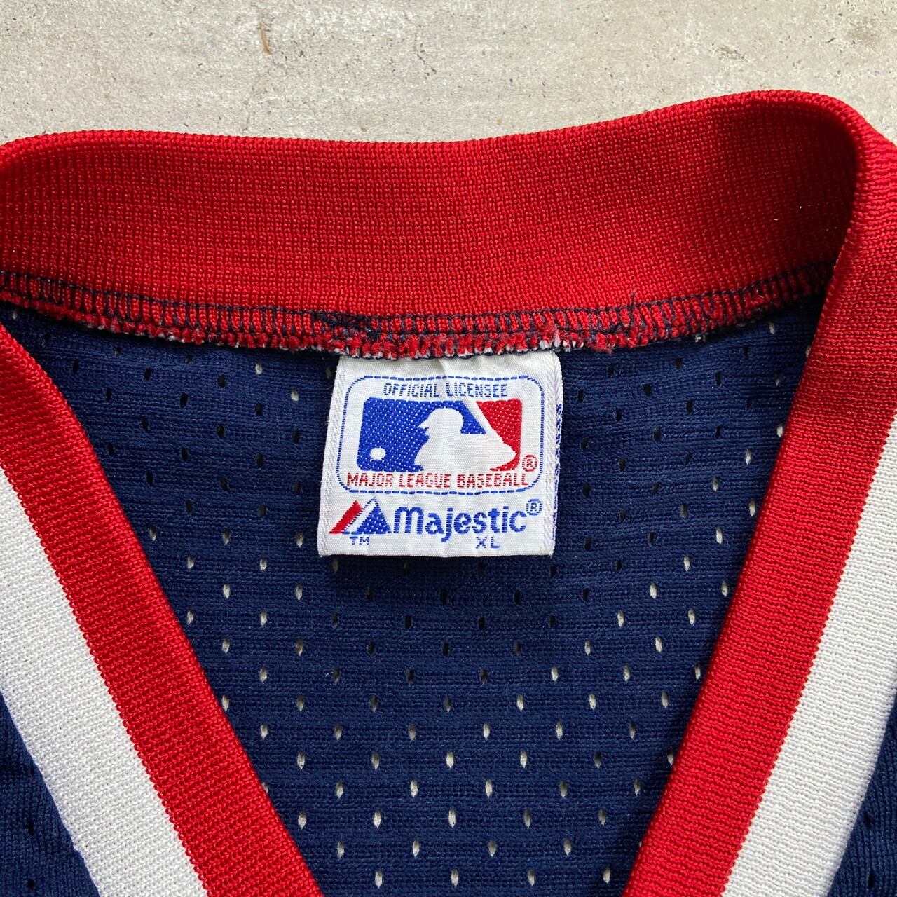■90年代 USA製 Majestic マジェスティック REDSOX ベースボールシャツ メッシュ メンズXL 古着 90s VINTAGE ヴィンテージ アメリカ製 紺色【ゲームシャツ】/ネイビー