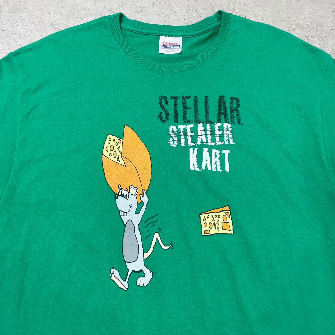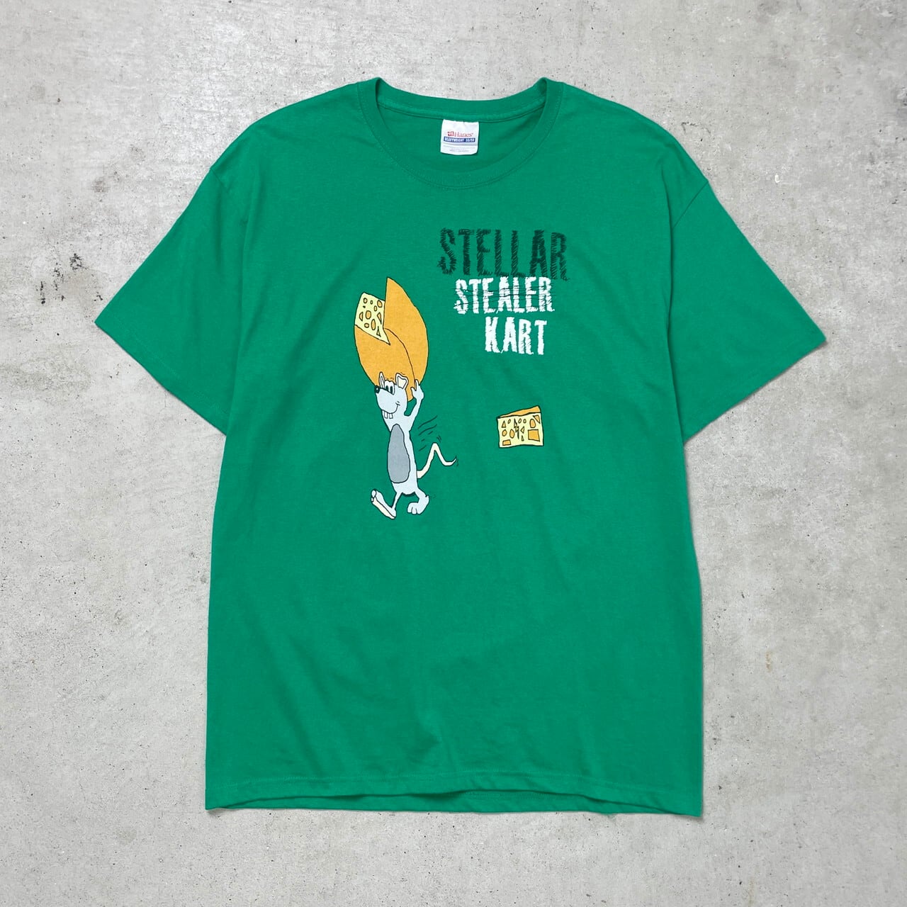 ■00年代 STELLAR KART キャラクタープリントTシャツ メンズL 古着 00s Y2K 緑色【Tシャツ】/グリーン