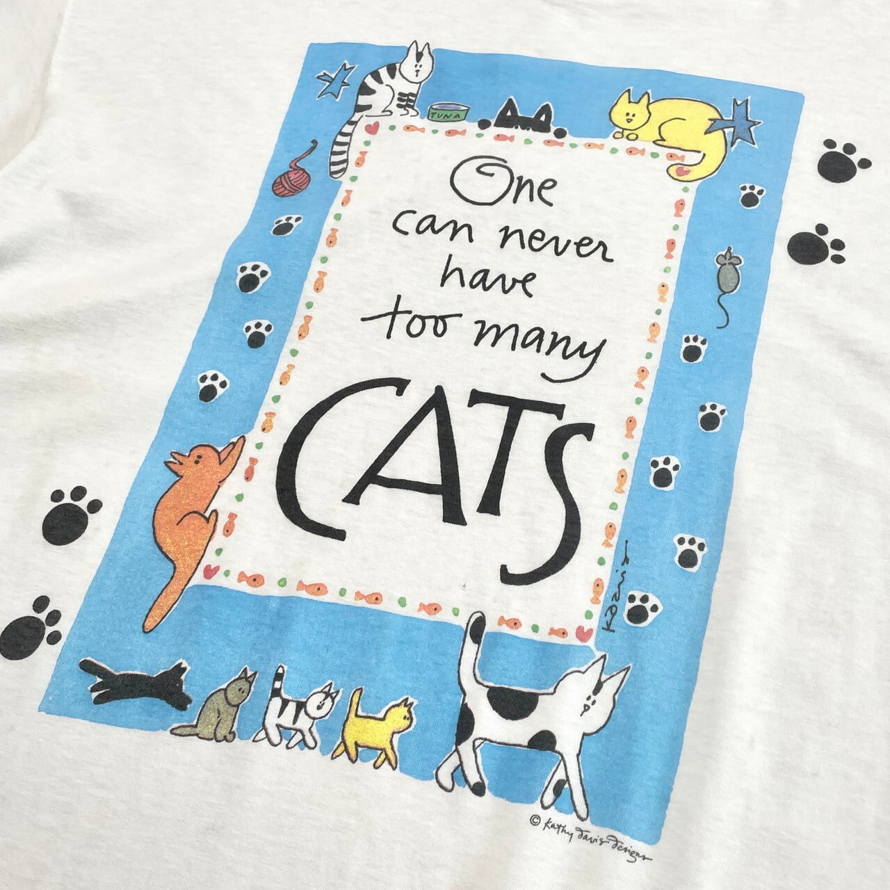 90年代 Kathy Davis アートプリントTシャツ アニマル 猫 ネコ メンズXL相当 古着 90s ヴィンテージ VINTAGE シングルステッチ 動物 白【Tシャツ】/ホワイト【SA2501-50】