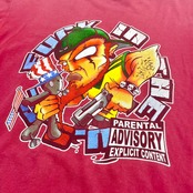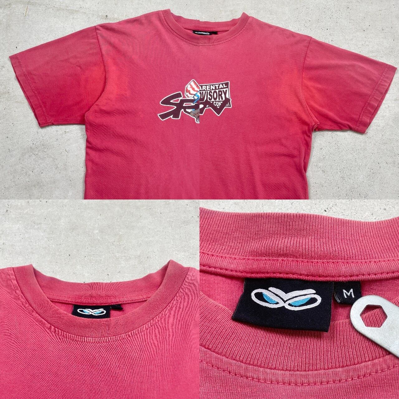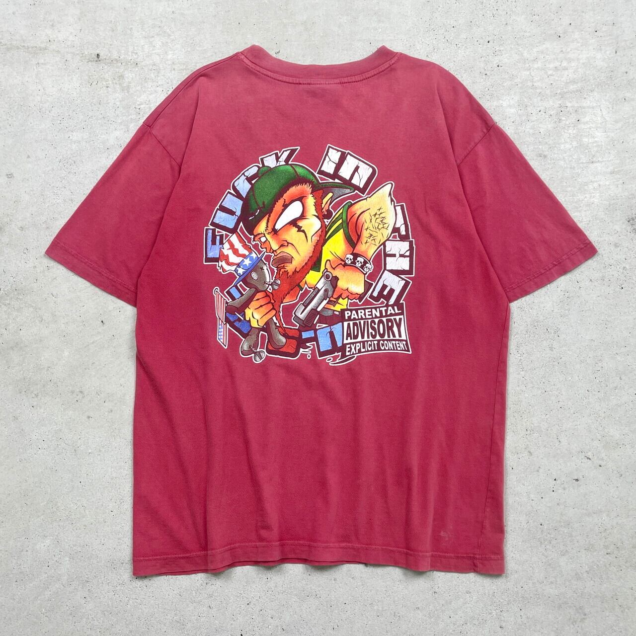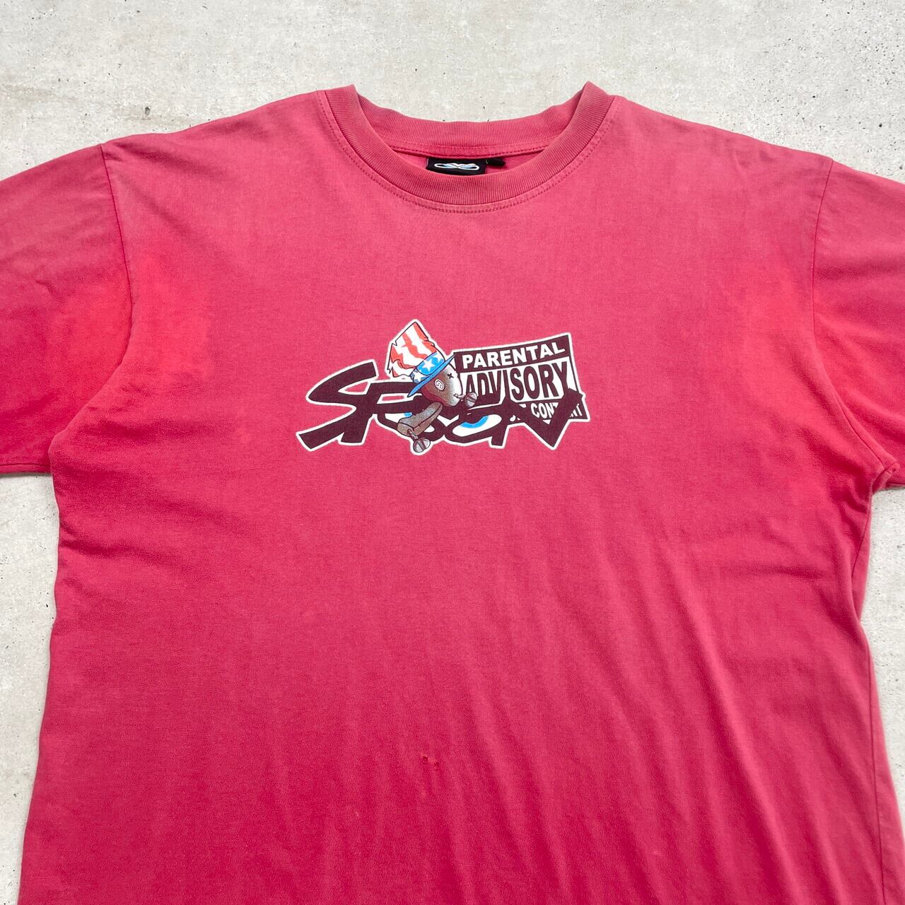00年代 PARENTAL ADVISORY EXPLICIT CONTENT ペアレンタル・アドバイザリー プリントTシャツ メンズL相当 古着 00s Y2K フェードワインレッド 朱色【Tシャツ】/ワインレッド【SA2501-50】