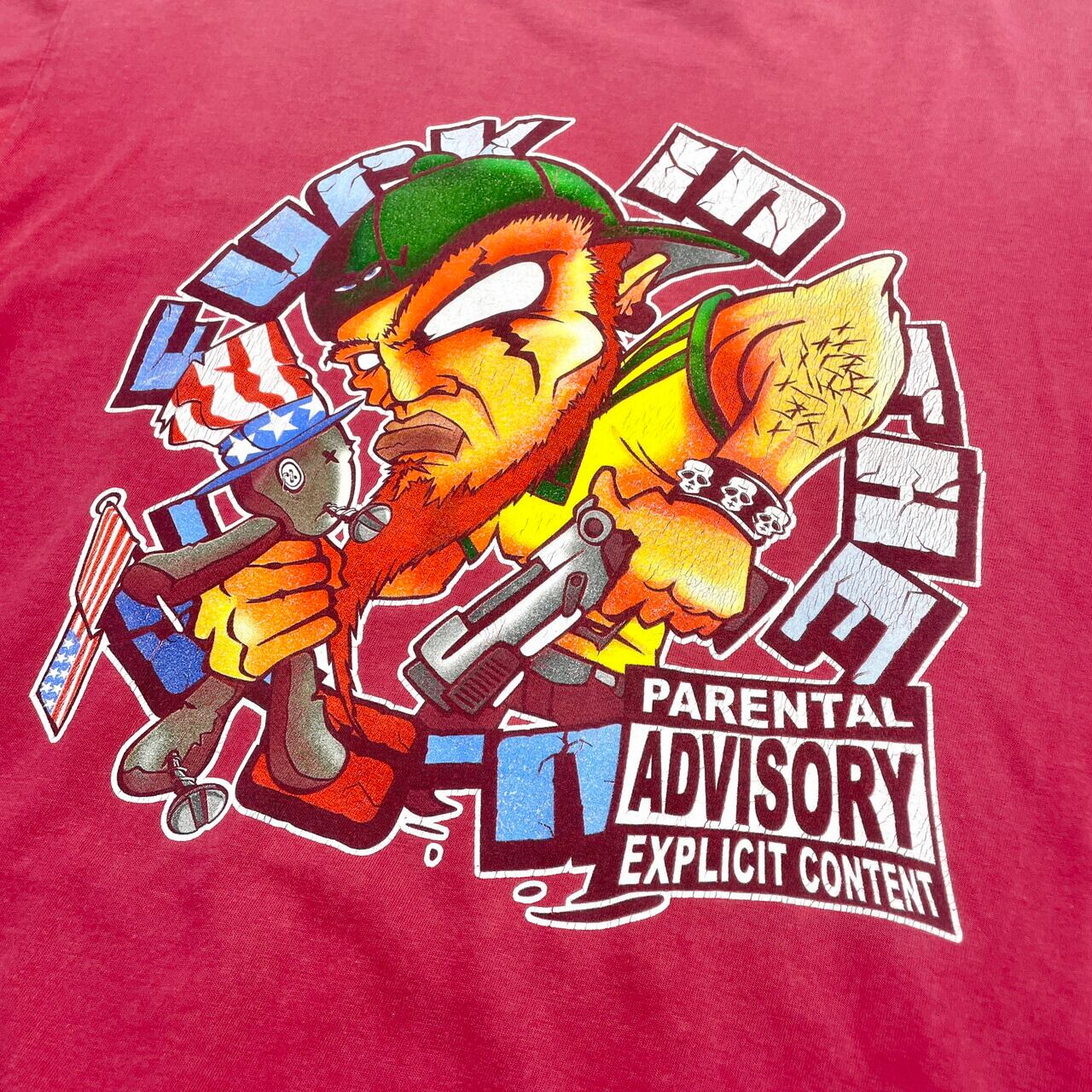 ■00年代 PARENTAL ADVISORY EXPLICIT CONTENT ペアレンタル・アドバイザリー プリントTシャツ メンズL相当 古着 00s Y2K フェードワインレッド 朱色【Tシャツ】/ワインレッド