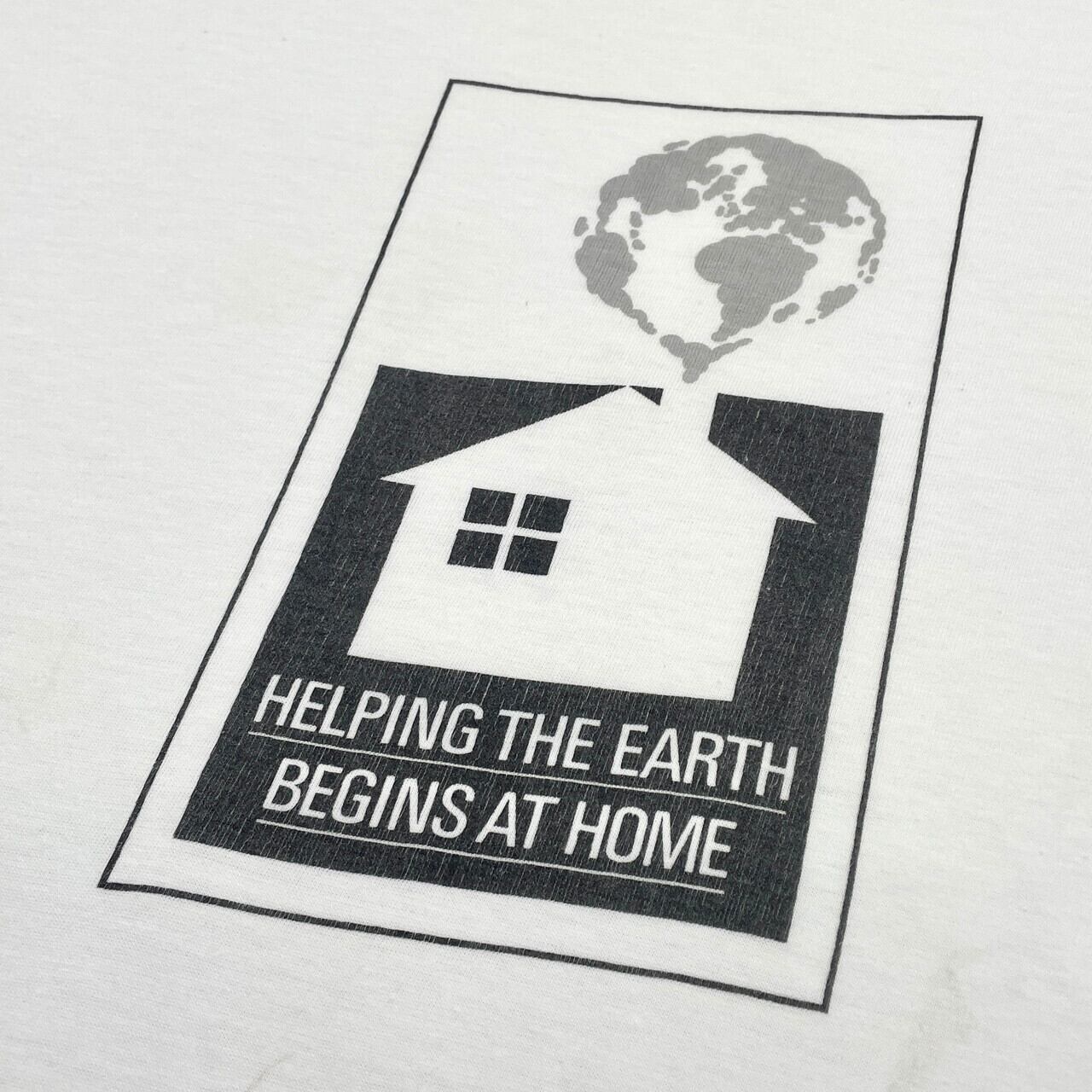 ■90年代 HELPING THE EARTH BEGINS AT HOME アート メッセージ プリントTシャツ メンズXL 古着 シングルステッチ VINTAGE ヴィンテージ ART 白色【Tシャツ】/ホワイト
