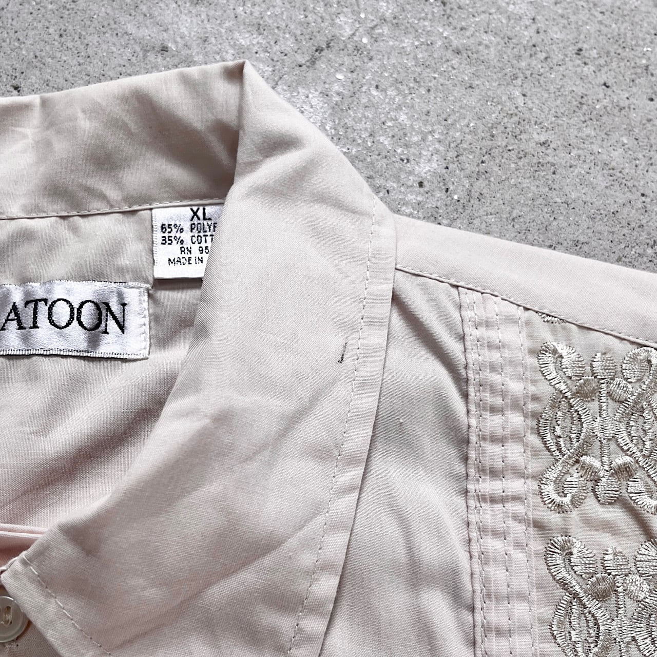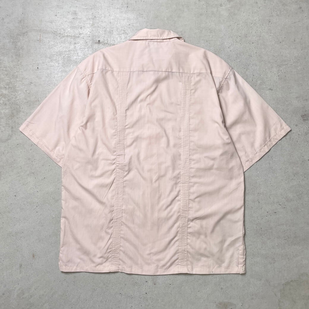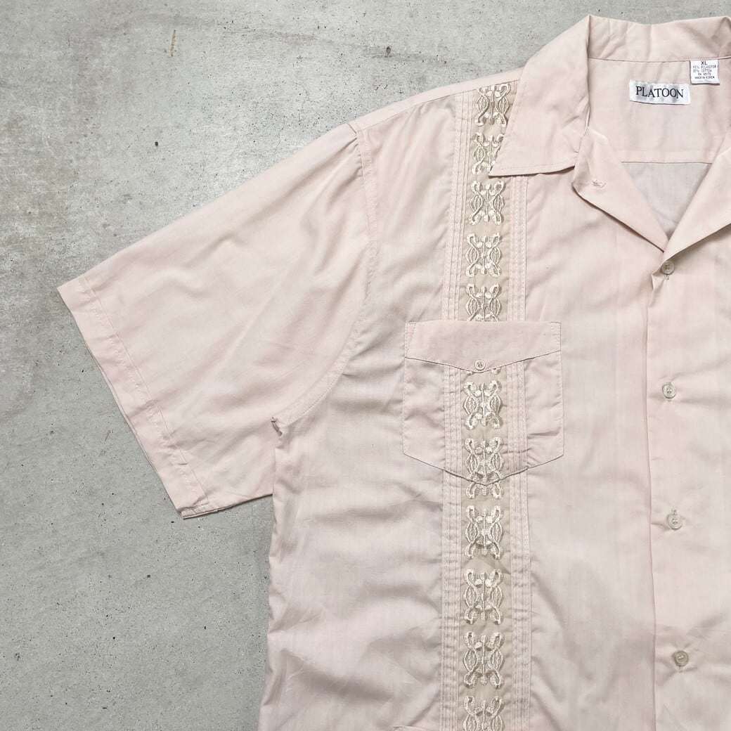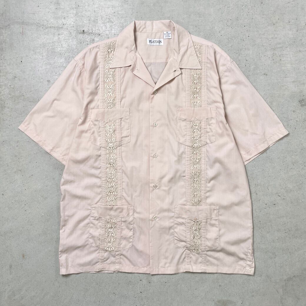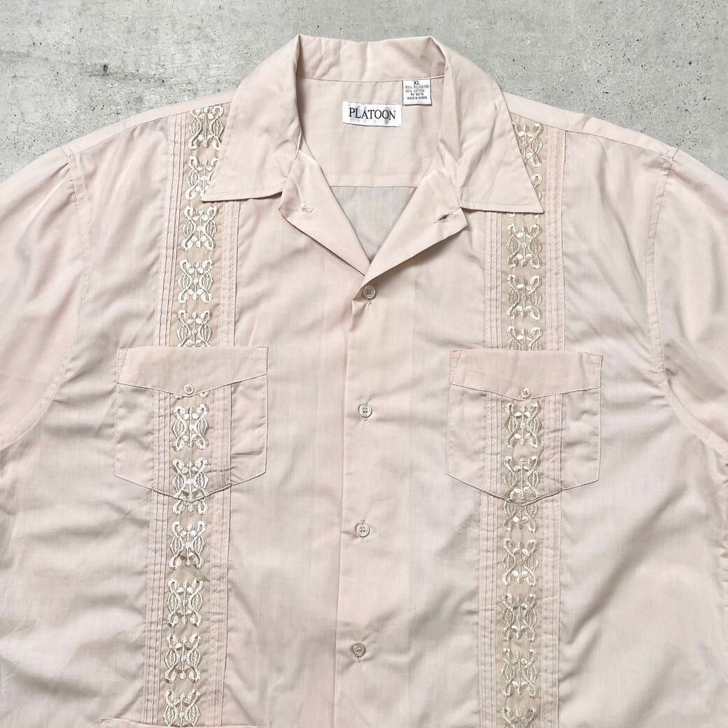 ■PLATOON キューバシャツ メキシカンシャツ メンズXL 古着 刺繍 開襟 オープンカラーシャツ ピンクベージュ 【半袖シャツ】/ベージュ