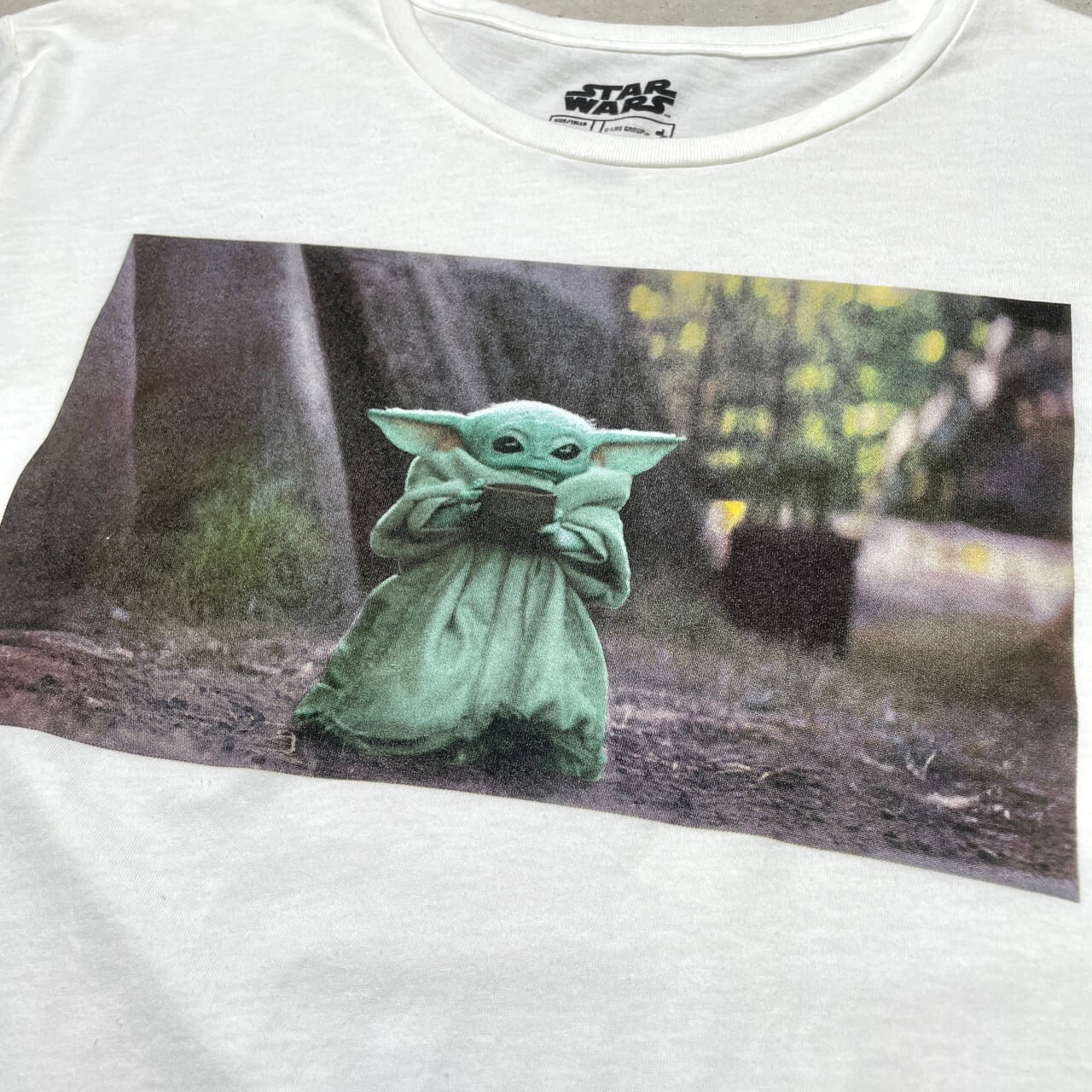 STAR WARS スターウォーズ ベビーヨーダ ムービープリントTシャツ メンズ2XL 古着 映画 白色【Tシャツ】/ホワイト【SA2501-50】