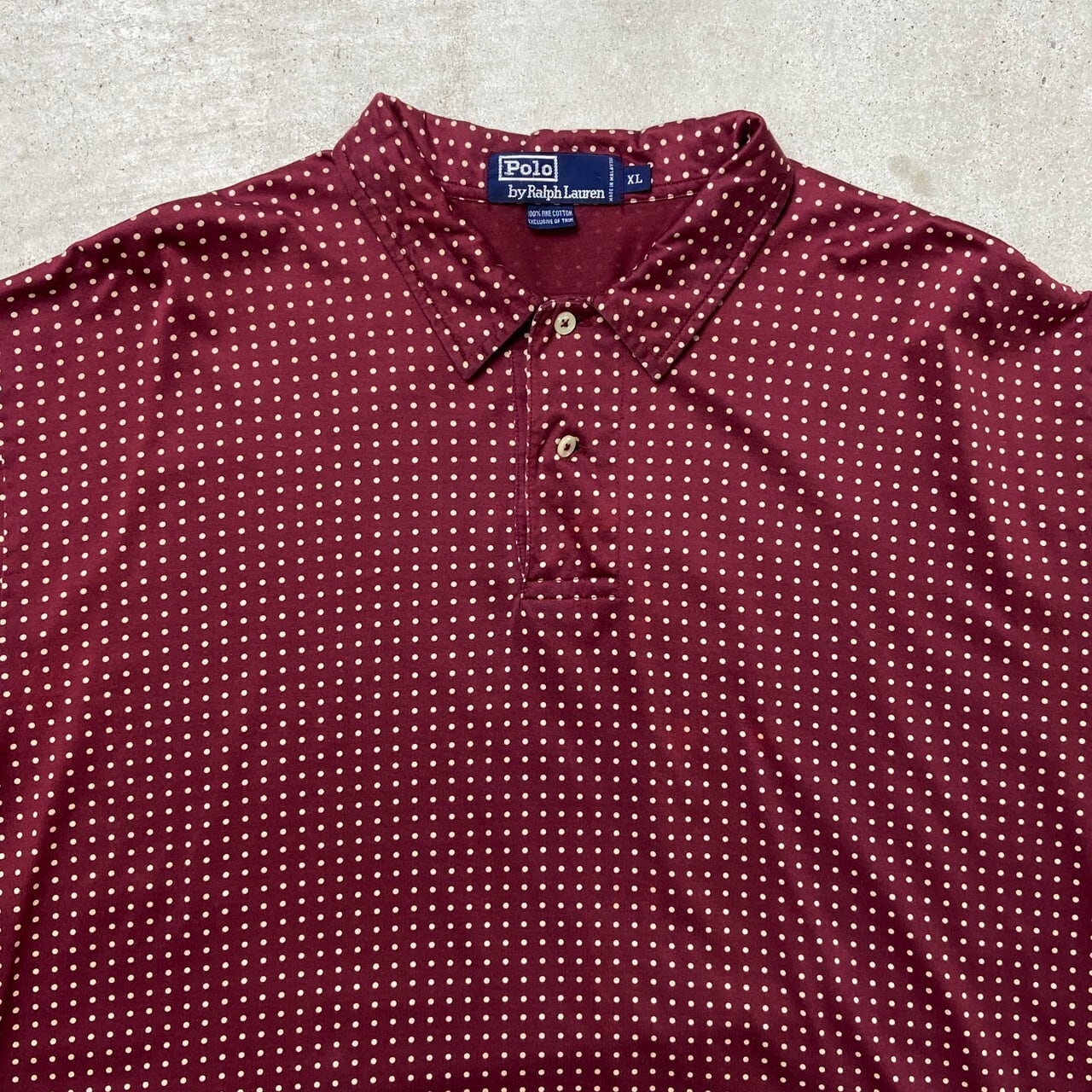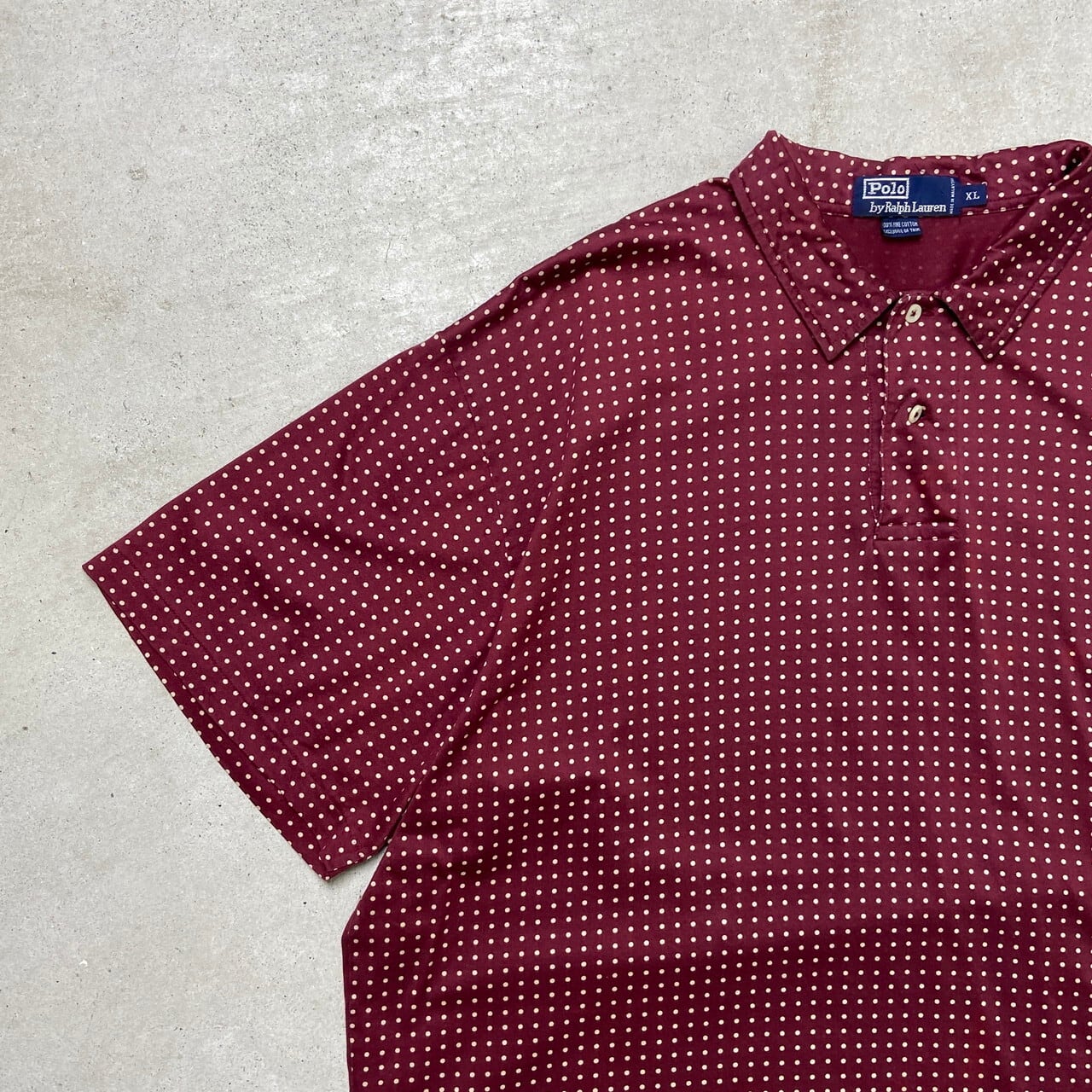 90年代 Polo by Ralph Lauren ポロバイラルフローレン ドット柄 Tシャツ地 ポロシャツ メンズ2XL相当 古着 90s ヴィンテージ VINTAGE オールドラルフローレン 朱色【ポロシャツ・ラガーシャツ】/ワインレッド【SA2501-50】【SS50】