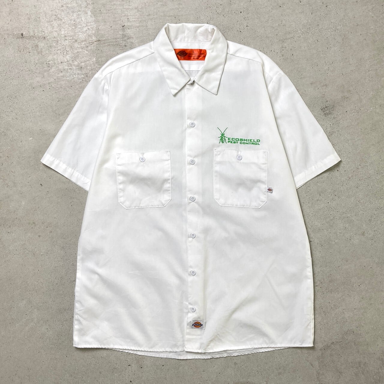 Dickies ディッキーズ 半袖 ワークシャツ 企業ロゴ メンズL 古着 白色【半袖シャツ】/ホワイト【SA2501-50】